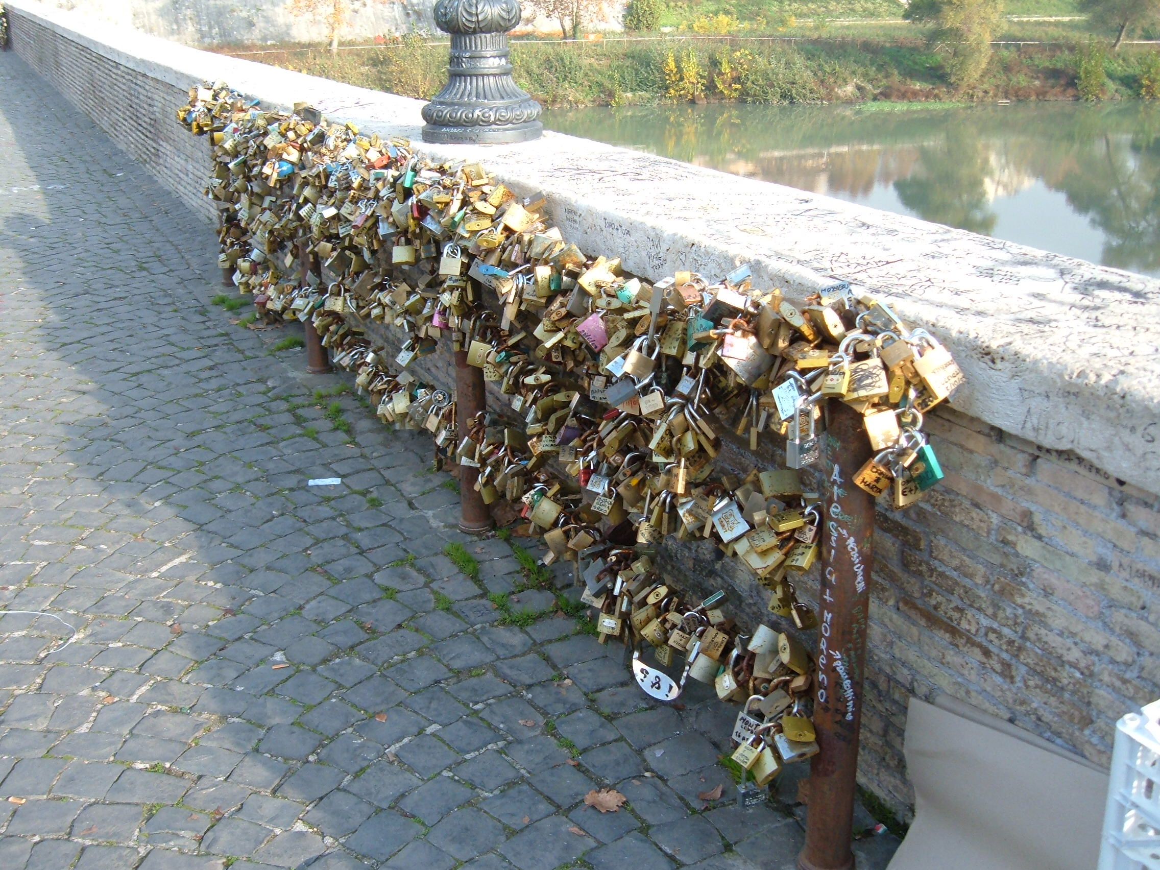 페데리코 모치아의 인기 소설 및 영화 "나는 너를 원해"(''Ho voglia di te'', 2006)가 개봉된 이후, 연인들은 사랑의 증표로 자물쇠를 다리의 가로등에 걸기 시작했다. 자물쇠를 걸고 나서 열쇠를 뒤로 던져 티베르 강에 버리는 풍습이 생겼다.[2] 2007년 자물쇠의 무게로 인해 가로등이 부분적으로 붕괴되자, 난간, 울타리, 쓰레기통을 포함한 다리의 다른 부분에도 자물쇠가 걸리기 시작했다. 로마 시장이 다리에 자물쇠를 부착하는 사람에게 50EUR의 벌금을 부과했음에도 불구하고 이 관행은 계속되었다. 결국 2012년 시 당국은 다리에서 모든 자물쇠를 제거했다.[3] 이 사랑의 자물쇠를 거는 전통은 이탈리아 전역, 유럽 및 전 세계로 퍼져나갔다.3. 2. 훌리건 폭력