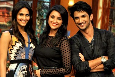 『Shuddh Desi Romance』의 프로모션을 하는 바니, 파리니티, 수샨트