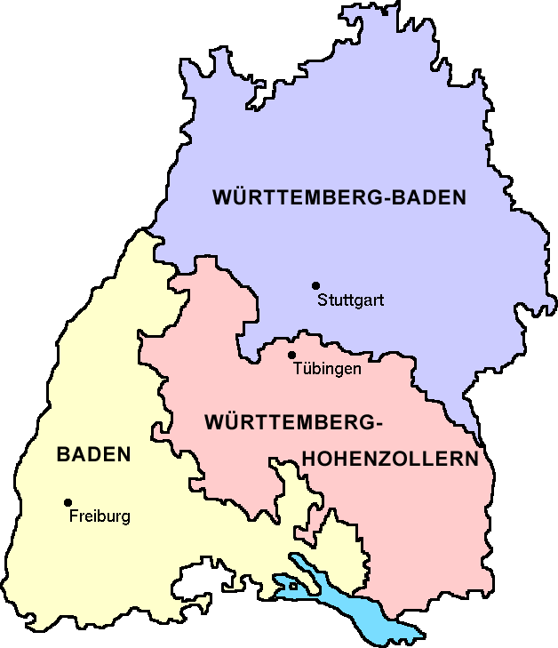 - 뷔르템베르크-바덴(Württemberg-Baden) (수도: 슈투트가르트(Stuttgart))
