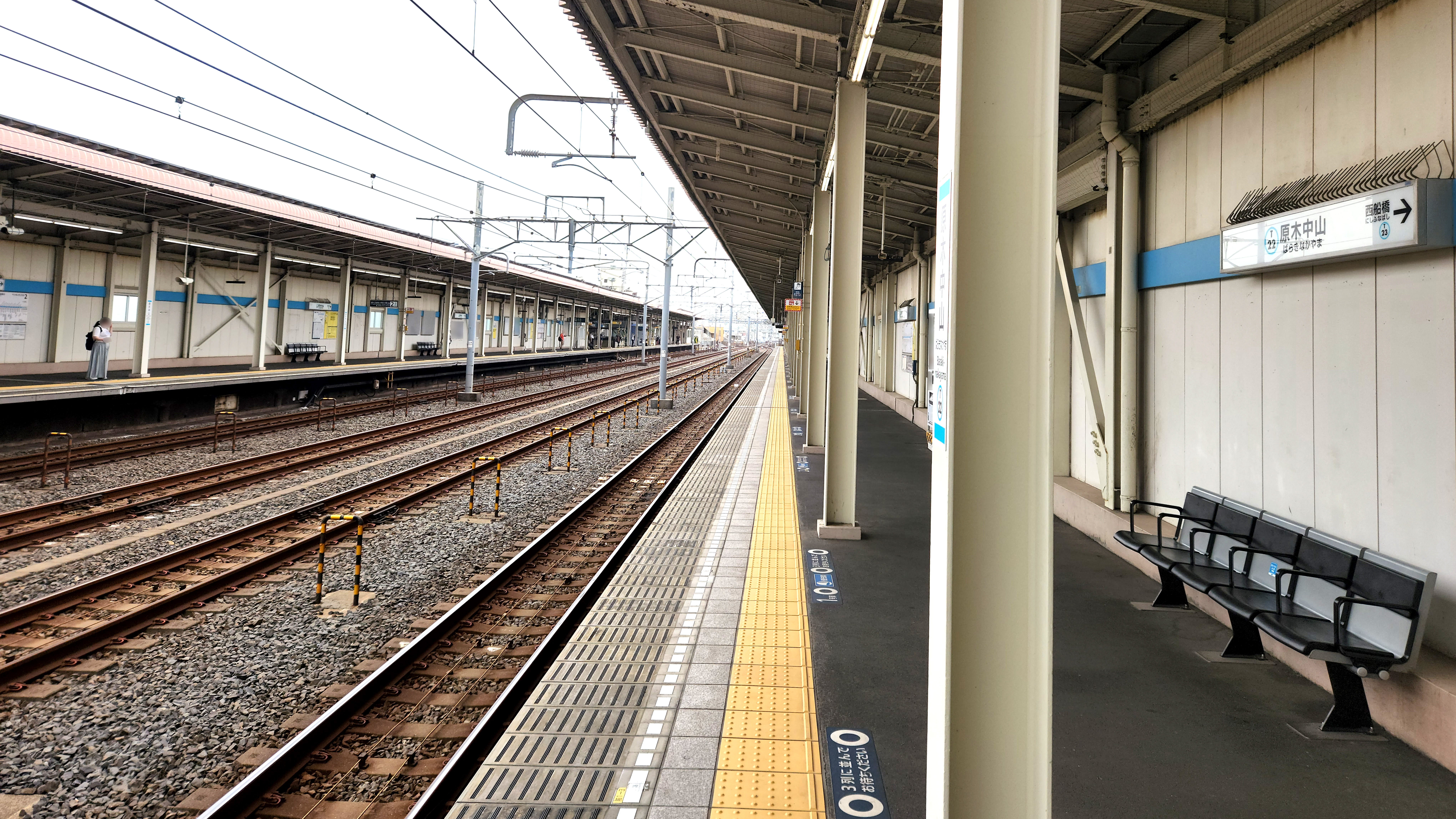 역사는 후나바시시에 위치하지만, 승강장 서쪽 끝은 이치카와시와의 경계에서 약 50m 거리에 있어 이치카와 시민의 이용도 많다.[70] 역 북쪽으로 약 1.5km 떨어진 곳에 시모사나카야마역(JR 동일본 소부 본선)이 있으며, 남서쪽으로 약 2km 떨어진 곳에 후타마타신마치역(JR 동일본 게이요선)이 있다.