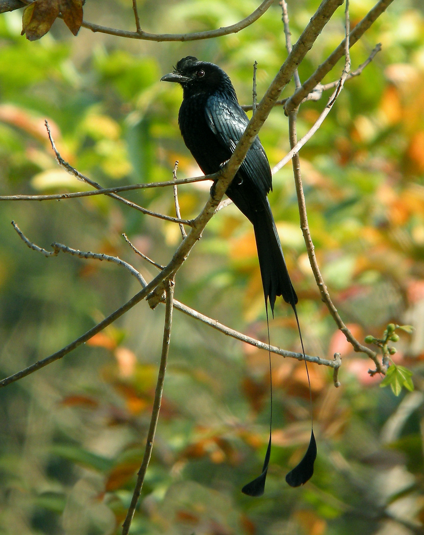 큰 래킷꼬리드롱고 | Dicrurus paradiseus | 인도에서 보르네오 및 자바까지 | |