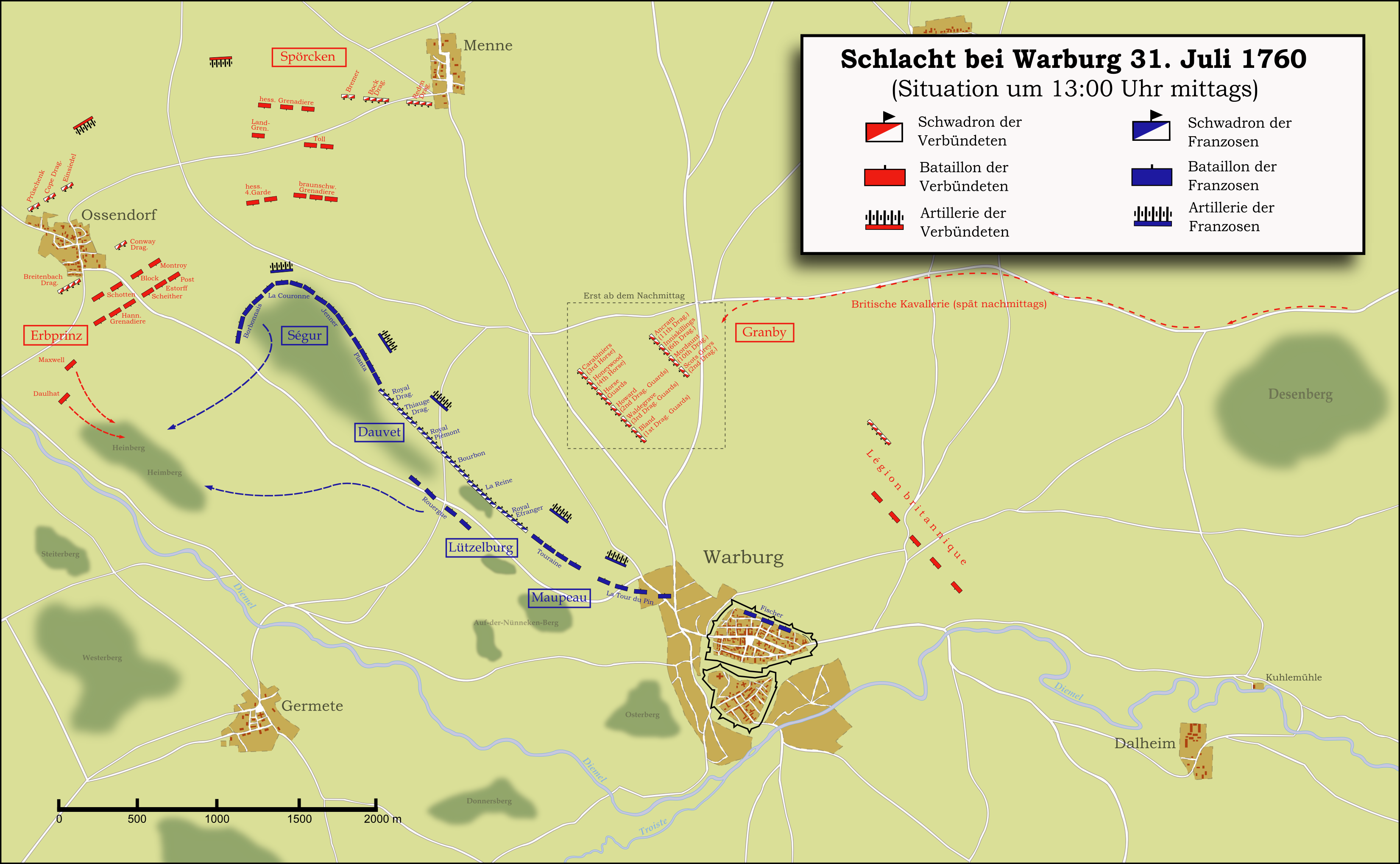 바르부르크 전투는 1760년 7월 31일, 7년 전쟁 중 서부 전선에서 일어난 전투이다. 브라운슈바이크 공작 페르디난트가 이끄는 연합군은 프랑스군을 상대로 승리했다. 이 전투는 프랑스군의 하노버 점령 시도를 저지하고, 연합군의 베스트팔렌 방어에 기여했다. 전투 결과 연합군은 1,173명의 사상자를 냈고, 프랑스군은 4,203명의 손실을 입었다. 바르부르크 전투는 영국 기병대의 활약으로 유명하며, 그랜비 후작의 용맹한 지휘는 "go bold-headed"라는 영어 관용구의 유래가 되었다.