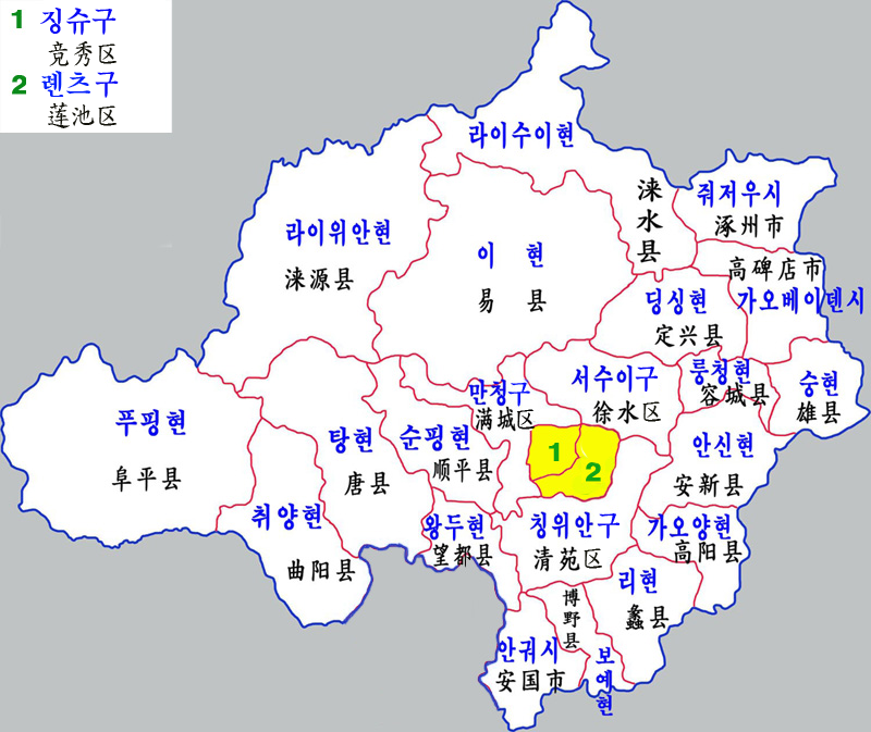 2014년 3월, 베이징의 수도 기능 일부를 보정시 등으로 분산시키는 것이 결정되어 허베이성은 수도권에 편입되었다[57].