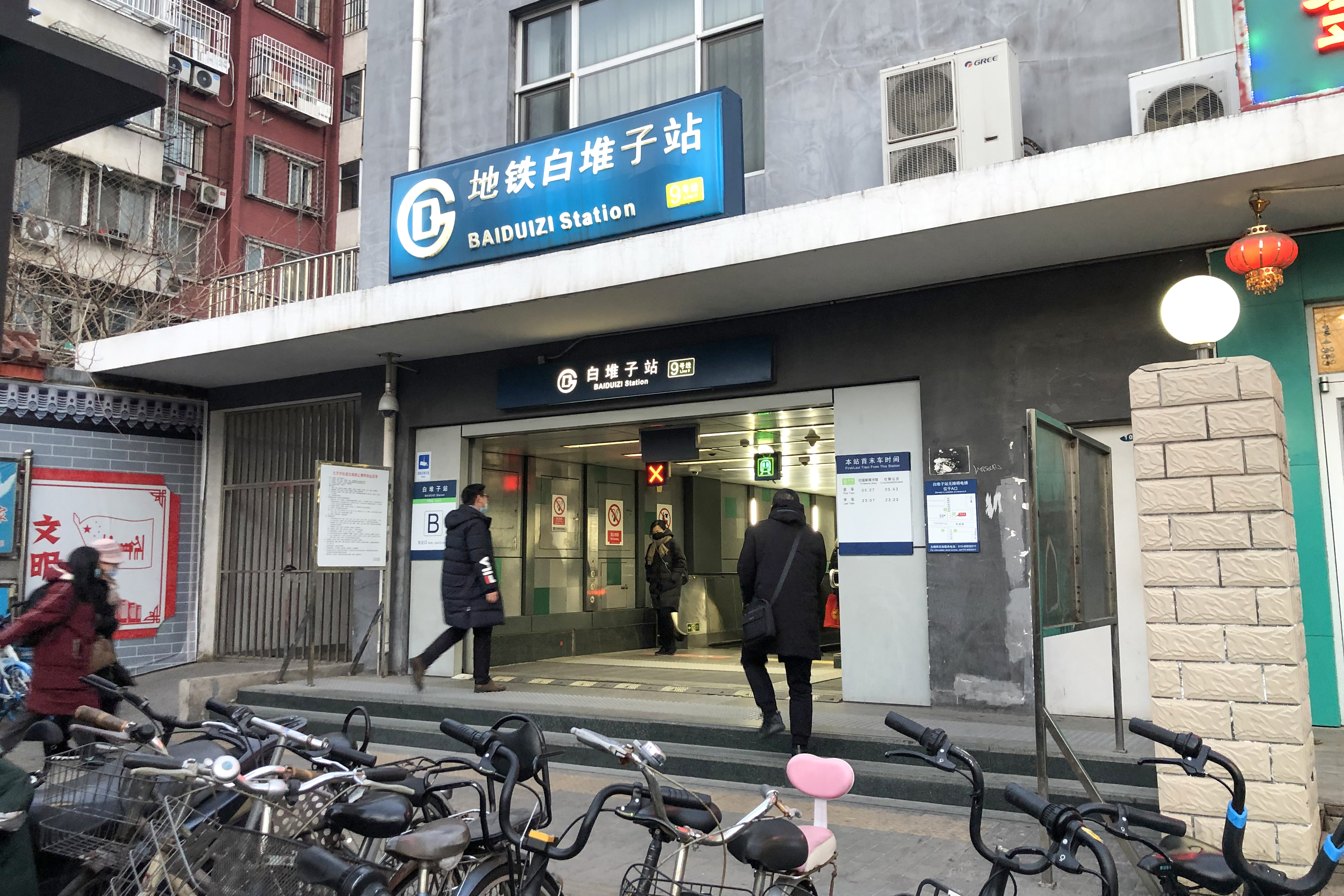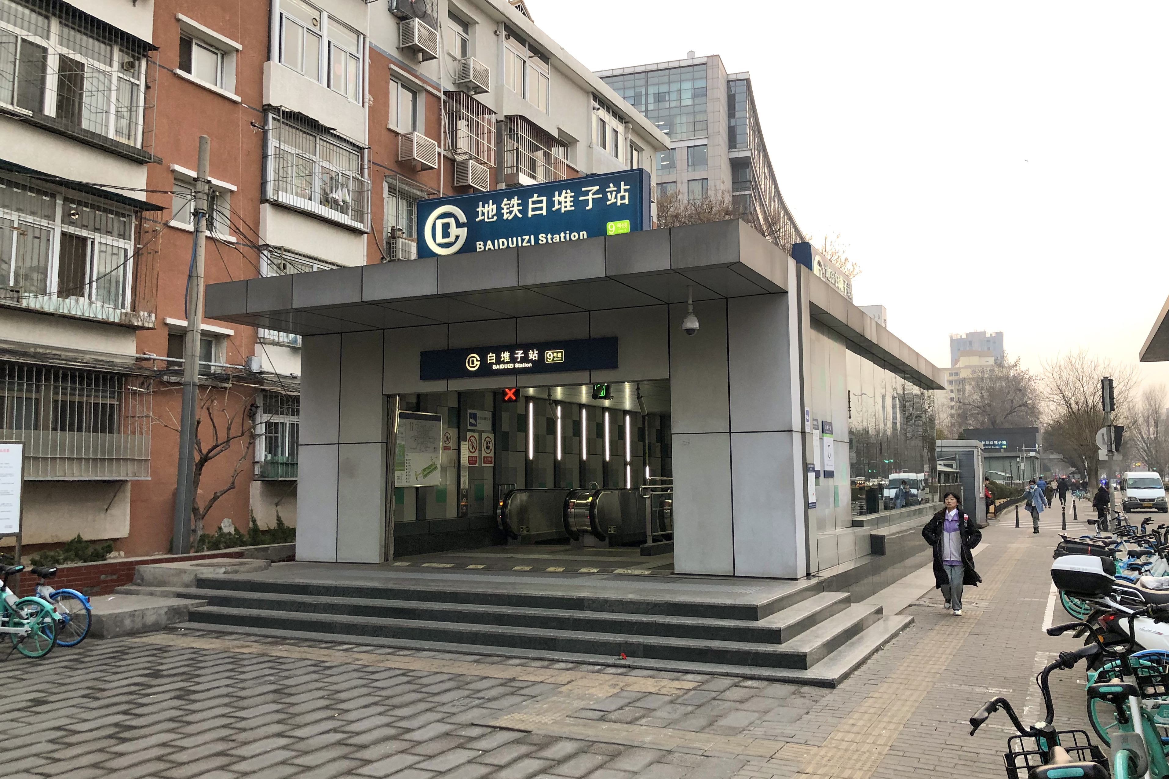 바이두이쯔역은 중화인민공화국 베이징 지하철 9호선과 3호선의 환승역이다. 푸청로와 중관춘대가 교차로에 위치하며, 9호선은 남북 방향, 3호선은 동서 방향으로 운행한다. 1면 2선의 섬식 승강장 구조이며, 2012년 12월 30일에 개업했다. A, B, C, D 4개의 출구가 있으며, A 출구에는 장애인 편의시설이 갖춰져 있다.