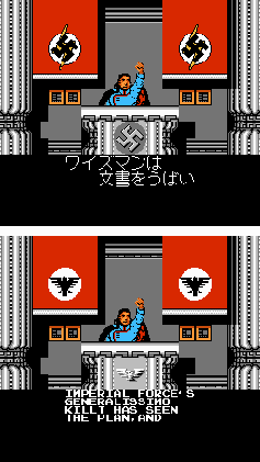 일본 패미컴 버전에서는 나치 만자 기호가 사용되었으나, 영어 NES 버전에서는 새로운 조류 기호로 대체되었다.