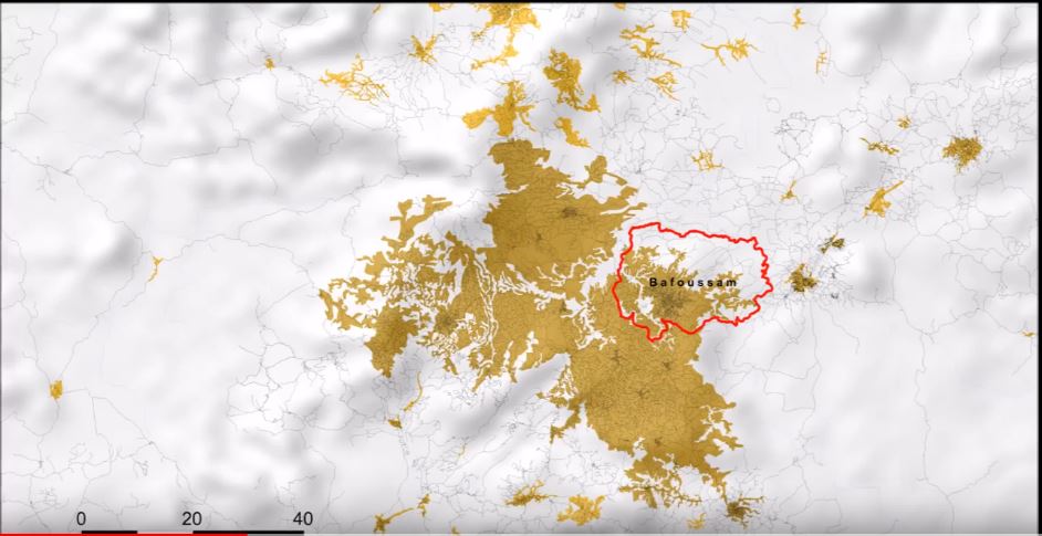 AFRICApolis가 정의한 바푸삼 연속 건축 밀집 지역 지도