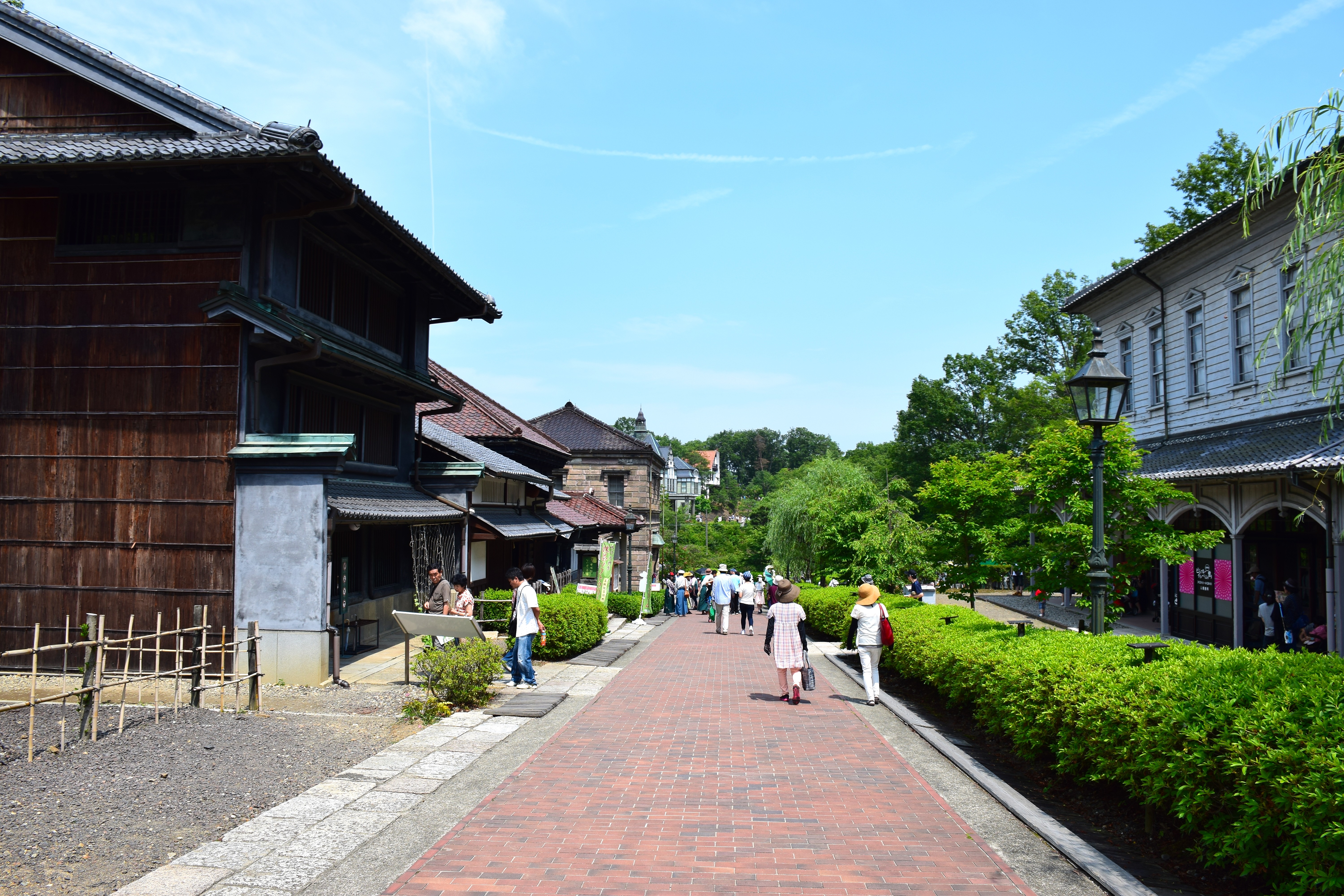 메이지 시대의 건축물들이 주를 이루지만, 일부 다이쇼 시대와 쇼와 시대 초기의 건물들도 포함되어 있다. 11개의 건물은 중요문화재로 지정되었고, 거의 모든 나머지 건물들은 등록유형문화재로 등록되어 있다.