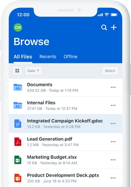 Box.com의 모바일 사용자 인터페이스 스크린샷