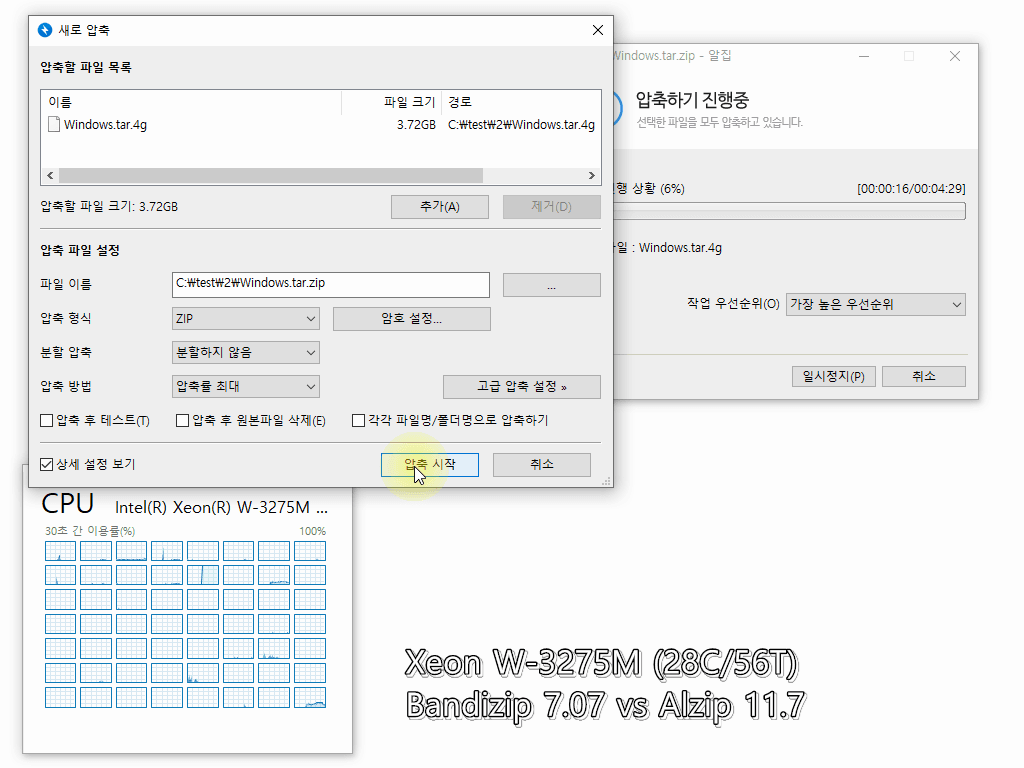 - 멀티스레드를 지원하는 LZMA2 알고리즘을 사용하여 압축 속도가 빠르다.
