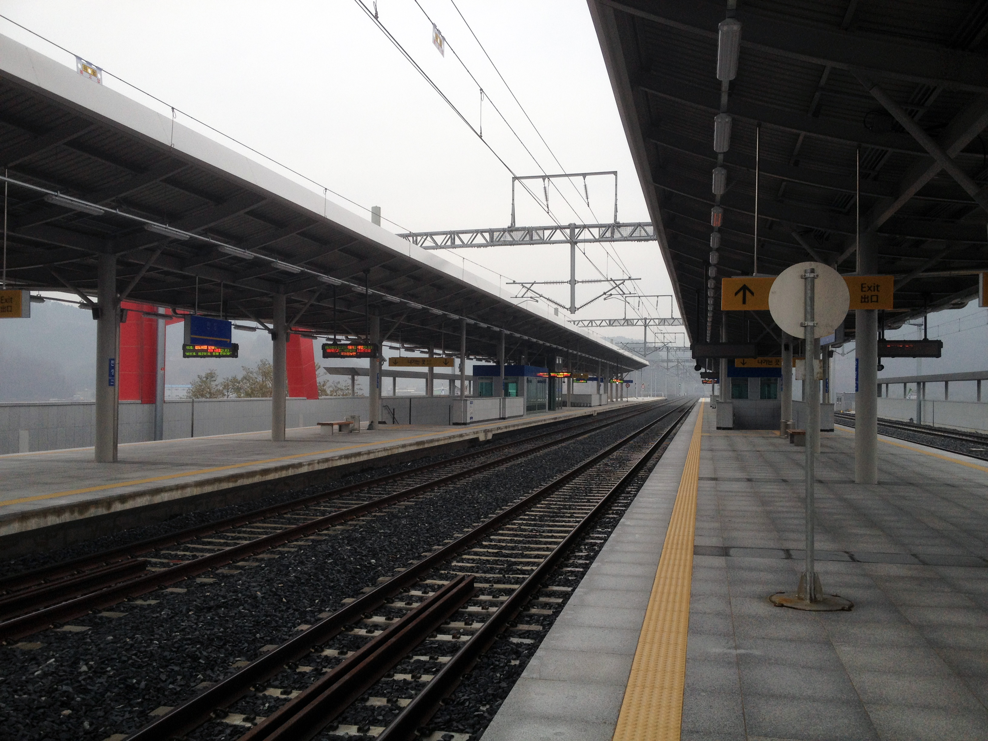 1면 2선의 지상역이다.↑ 군북 | ↓ 진주 | ||