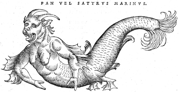 - ''Historia animalium IV''(1558)에서 게스너는 "바다의 판" 또는 "바다의 사티로스"(Pan- vel satyrus marinusla)라는 존재를 "물고기 켄타우로스" 또는 "바다의 악마"라고도 불렀으며, 물고기 하반신과 인간 상반신, 염소 수염, 뿔, 여성의 가슴을 가진 것으로 묘사했다.[5]