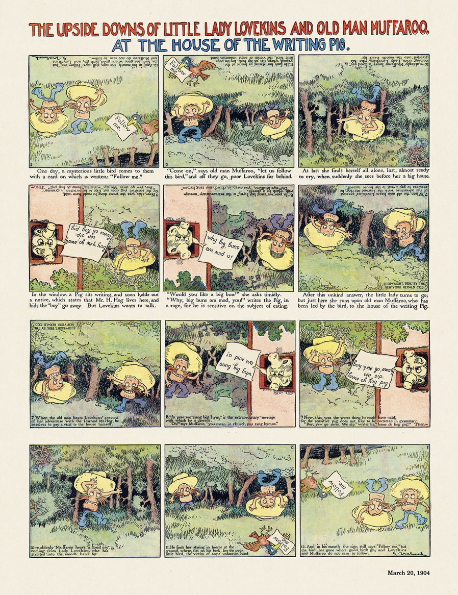 구스타브 베르비크는 1903년부터 1905년까지 《리틀 레이디 러브킨스와 올드 맨 머파루의 뒤집힌 세상》(The Upside Downs of Little Lady Lovekins and Old Man Muffaroo)이라는 만화 시리즈를 연재했다.[16] 이 만화는 6컷 만화를 읽고 책을 뒤집어 계속 읽을 수 있도록 제작되었으며, 총 64개의 만화가 만들어졌다. 2012년에는 마르쿠스 이바르손이 이 만화의 일부를 묶어 '리틀 리센 & 감레 무펜의 뒤집힌 세상'(In Uppåner med Lilla Lisen & Gamle Muppen)이라는 책으로 다시 출간했다.참조