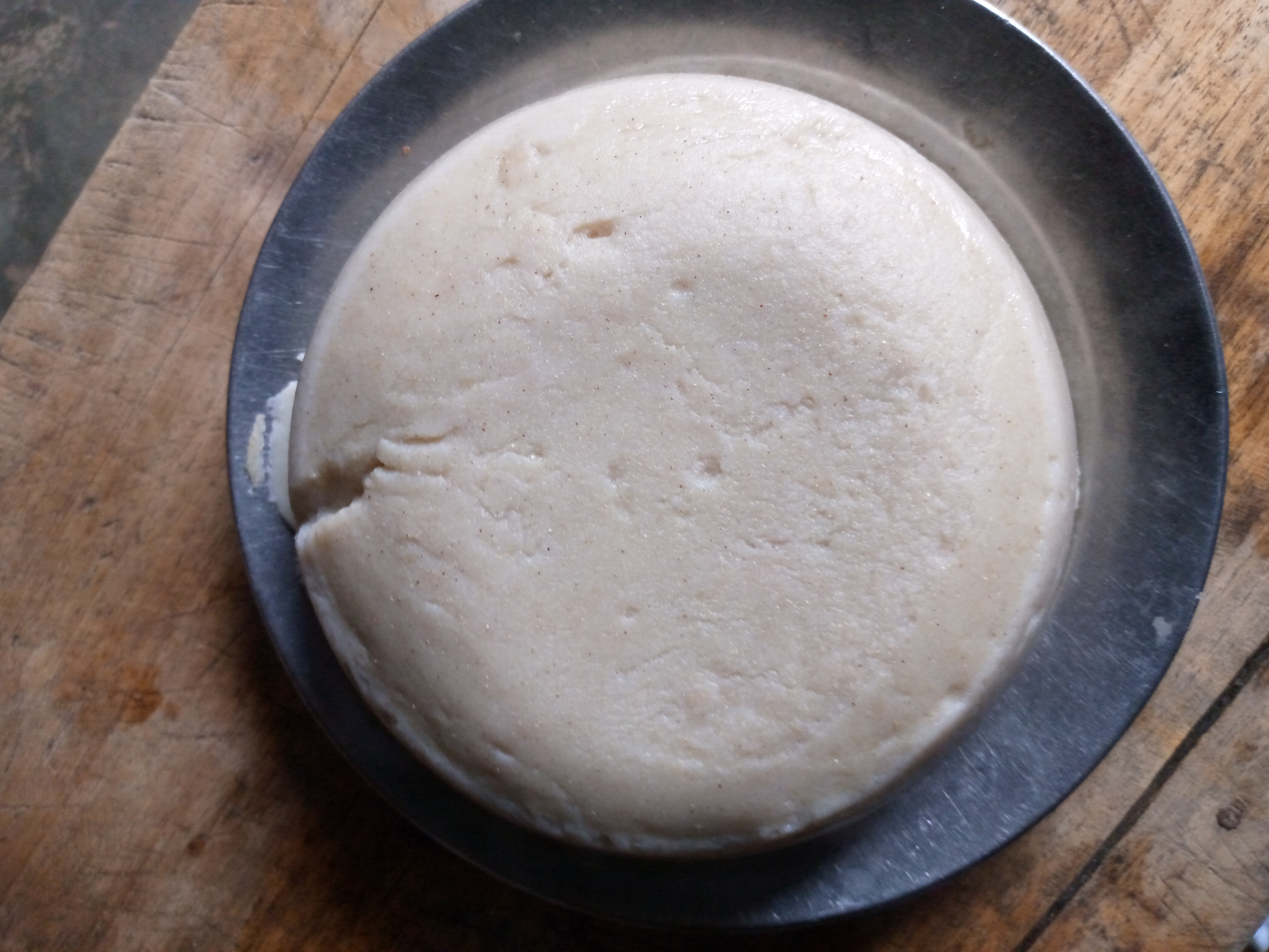 옥수수와 카사바 반죽에 물을 섞어 끓인다. 슬러리가 다시 반죽처럼 될 때까지 점차적으로 저어준 다음 부드러워질 때까지 반죽한다. "팬 속의 반죽 섬" 주위에 물을 넣어 표면을 거의 덮을 정도로 한다. 그런 다음 덮어두고 끓여서 덮인 팬 안에서 반죽이 골고루 익고 쪄지도록 한다. 다음으로 반죽을 주걱으로 반죽하여 물을 넣고 부드러워질 때까지 반죽한다.