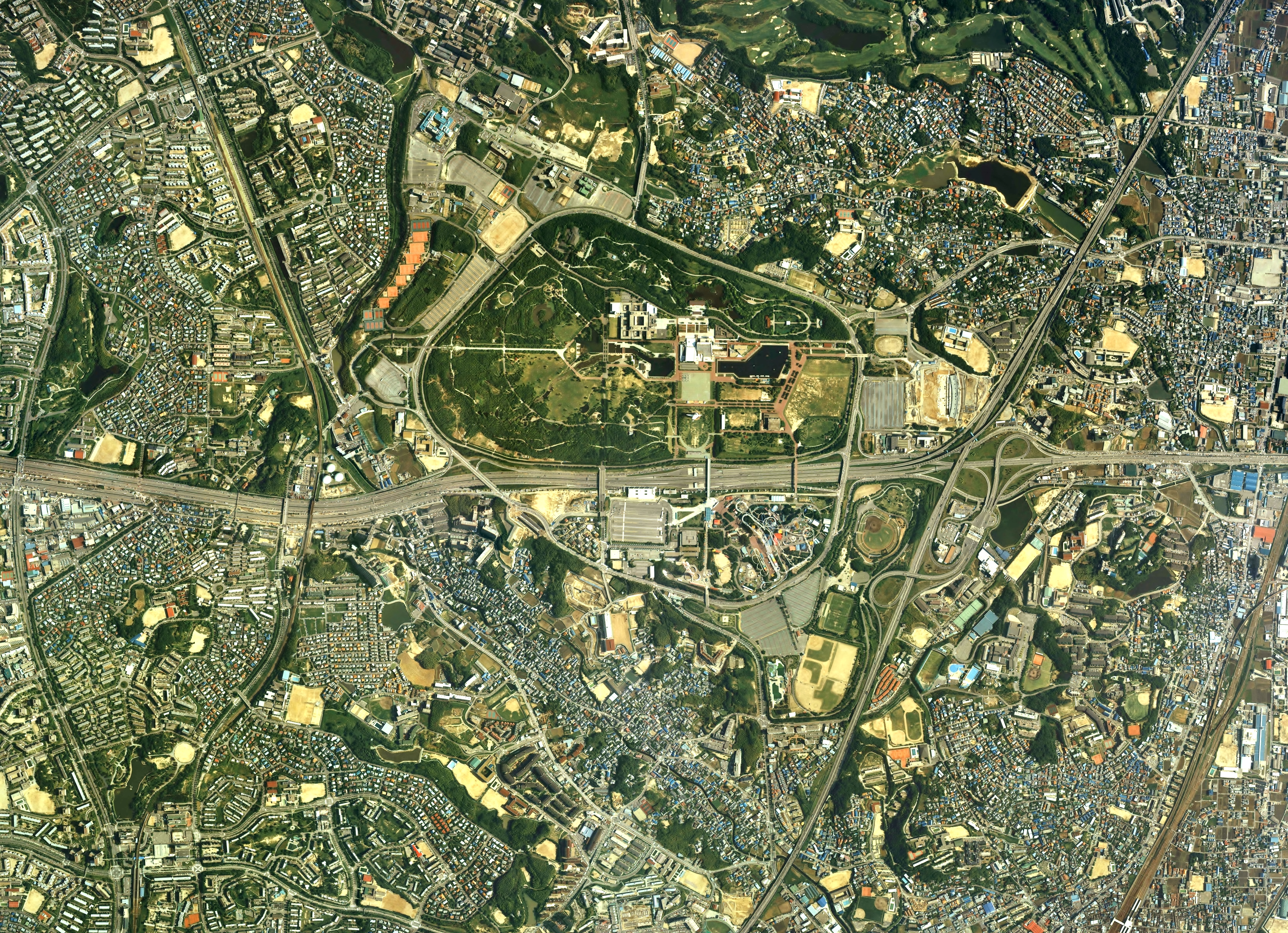 센리 뉴타운은 1960년대 오사카부에 조성된 일본 최초의 대규모 뉴타운으로, 주택 공급, 상업 및 문화 시설, 편리한 교통망을 갖춘 이상적인 도시를 목표로 건설되었으나, 현재는 시설 노후화와 고령화에 따른 쇠퇴를 극복하기 위한 재건축 사업이 진행 중이다. - 오사카부의 공원 - 오하마 공원