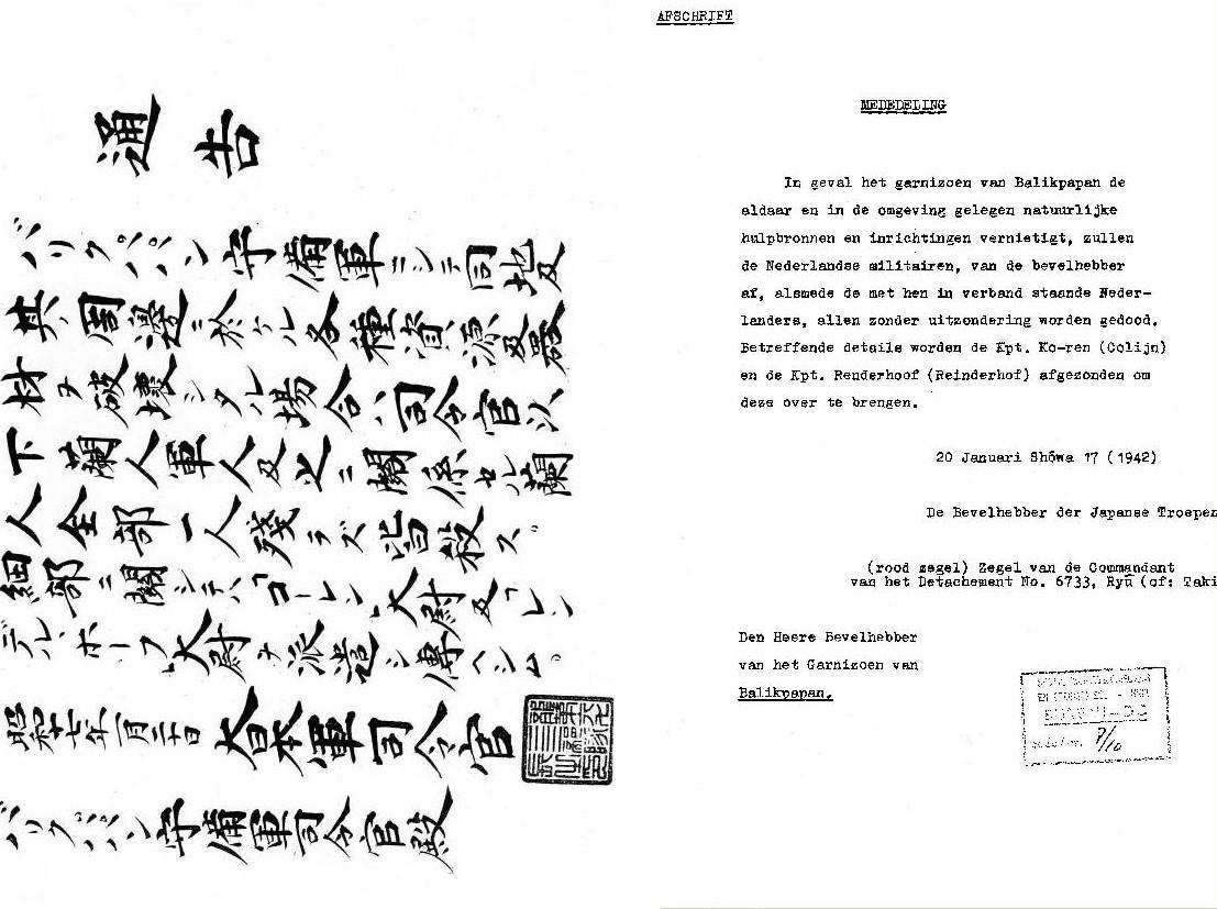일본은 네덜란드 방어군이 발릭파판의 유전을 파괴하려 한다고 우려하여, 정유소를 파괴할 경우 방어군과 민간인 모두에게 보복이 가해질 것이라는 경고와 함께 네덜란드 전쟁 포로들을 석방할 계획을 세웠다.[4]