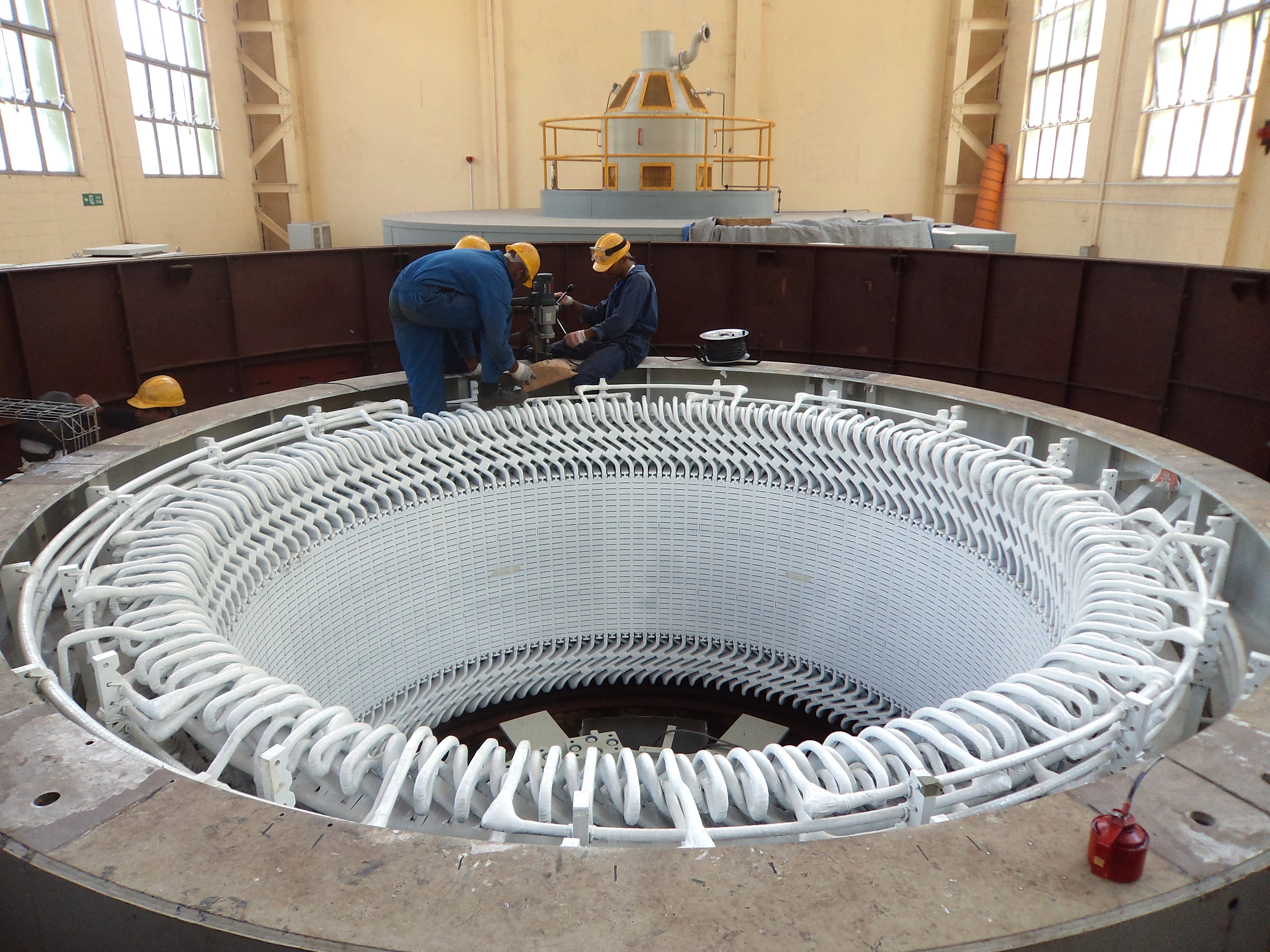 로터가 제거된 대형 발전기
