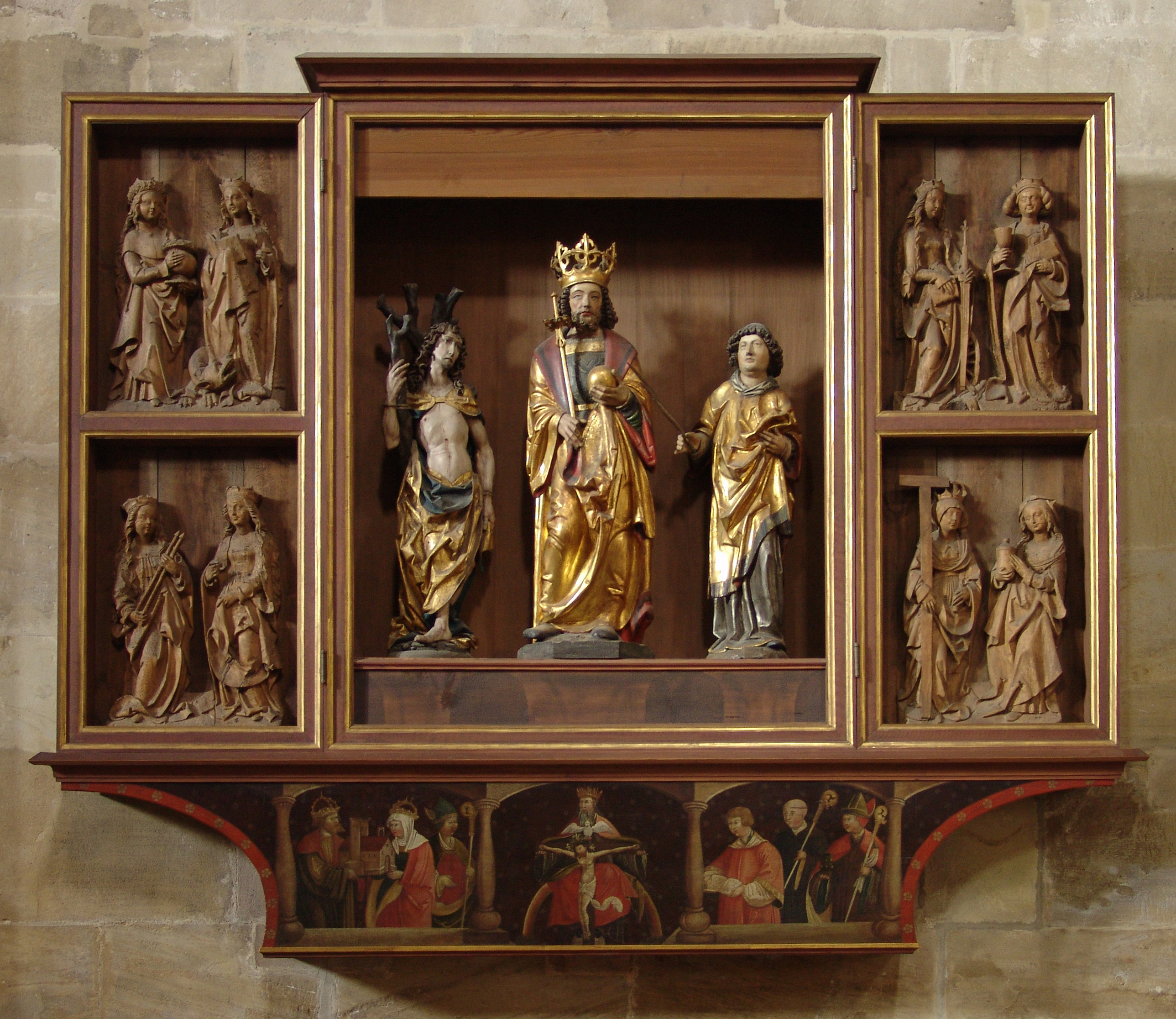 창립자인 하인리히는 1146년, 쿠니군데는 1200년에 시성되었으며, 1499년부터 1513년까지 조각가 틸만 리멘슈나이더가 이들의 묘비를 제작했다. 고딕 시대에는 많은 다른 예술 작품들이 추가되었다.[1]