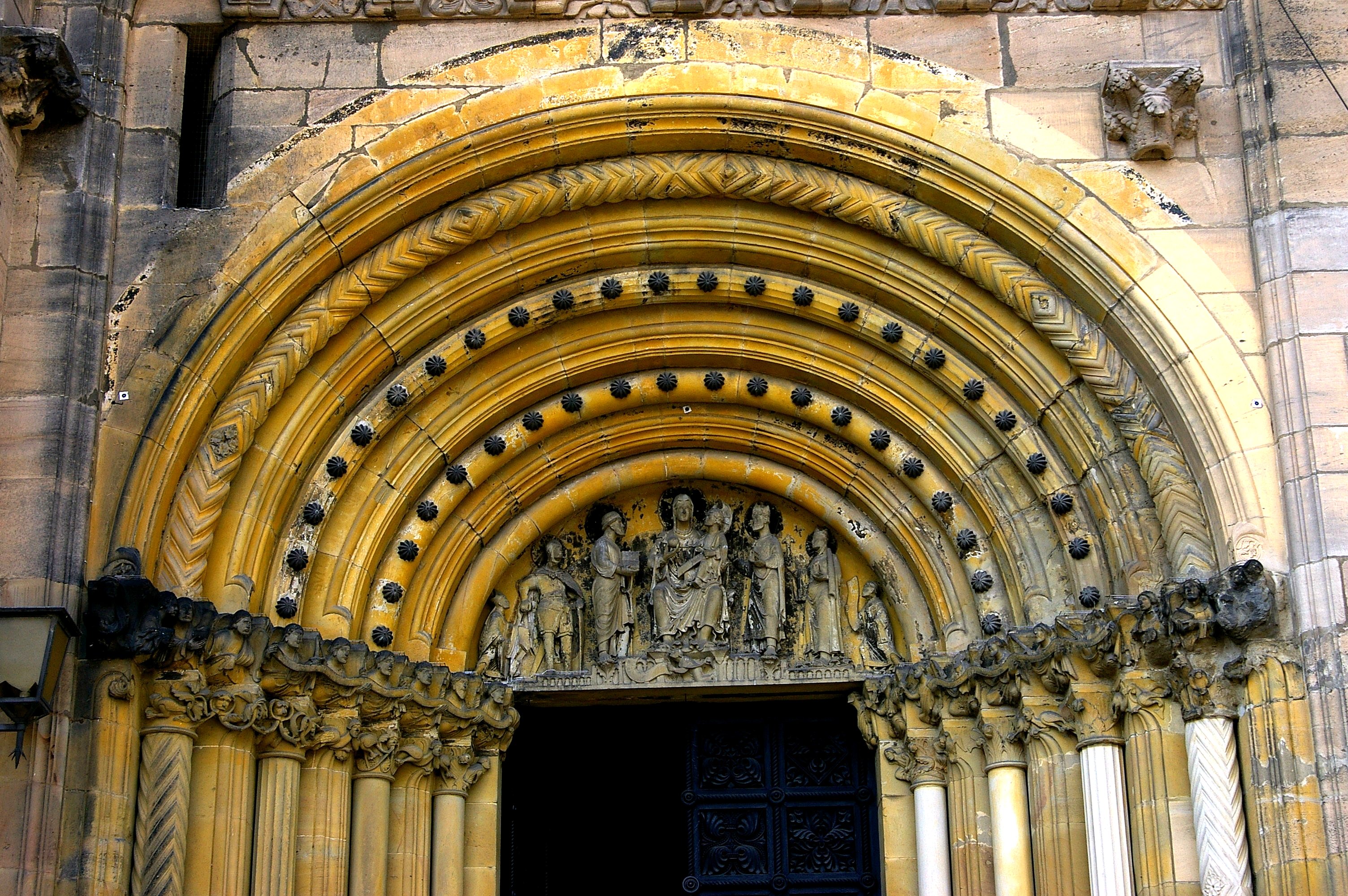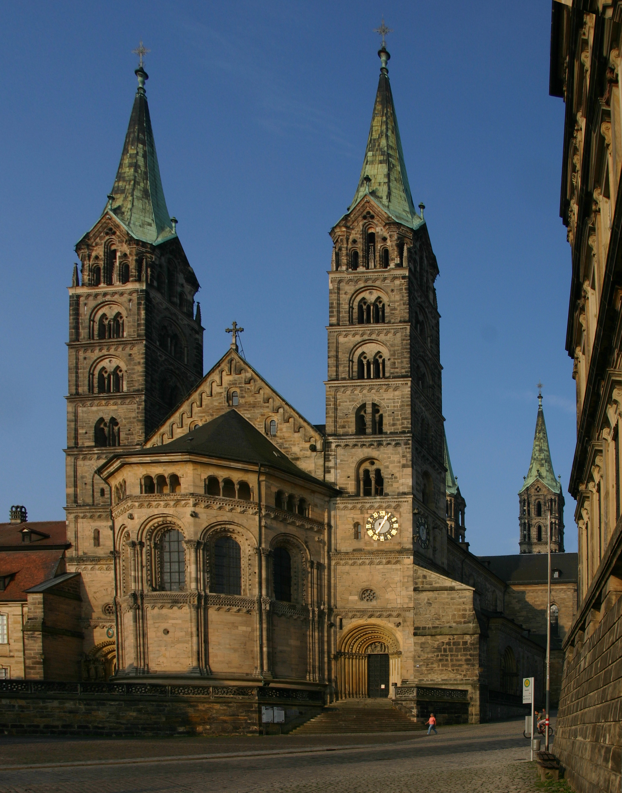 밤베르크 대성당은 독일 밤베르크에 위치한 후기 로마네스크 양식의 대성당이다. 1002년 하인리히 2세의 지시로 최초 건축이 시작되어 여러 차례 화재와 재건을 거쳐 현재의 모습으로 완성되었다. 밤베르크 대성당은 다양한 건축 양식의 혼합, 네 개의 탑, 그리고 틸만 리멘슈나이더가 제작한 하인리히 2세와 쿠니군데의 묘, 밤베르크 기수 등의 예술 작품으로 유명하다. 또한, 돔플라츠, 돔크란츠, 디외체산 박물관 등 주변 건축물과 함께 밤베르크의 중요한 문화 유산으로 자리 잡고 있다.