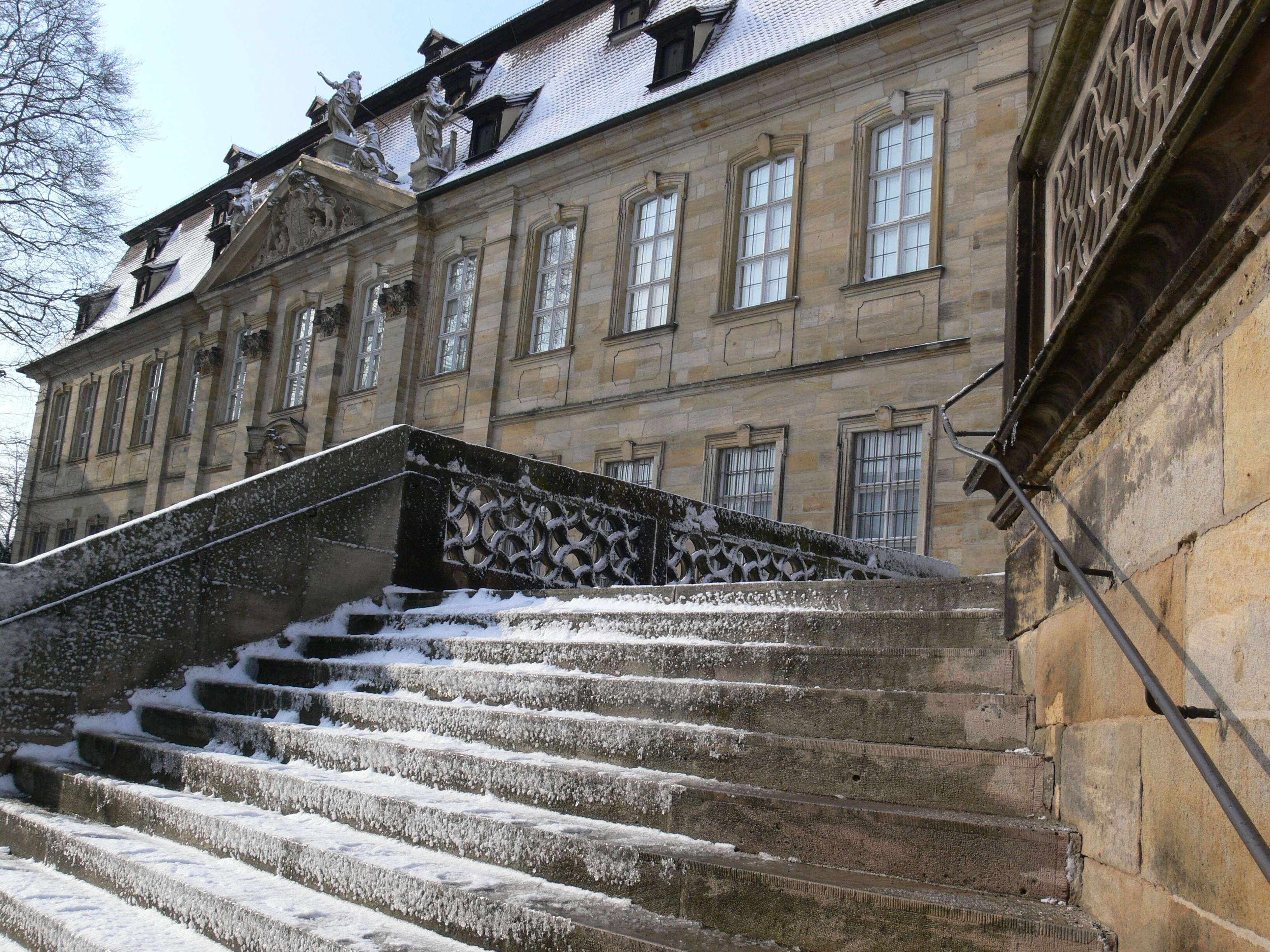 대성당 광장, 즉 돔플라츠에는 르네상스 건축 양식의 Alte Hofhaltung|알테 호프할퉁deu과 바로크 양식의 Neue Residenz|노이에 레지덴츠deu가 자리 잡고 있다. 이 건물들은 각각 15세기부터 1602년까지, 그리고 1602년부터 1803년까지 밤베르크 주교들의 궁전으로 사용되었다.