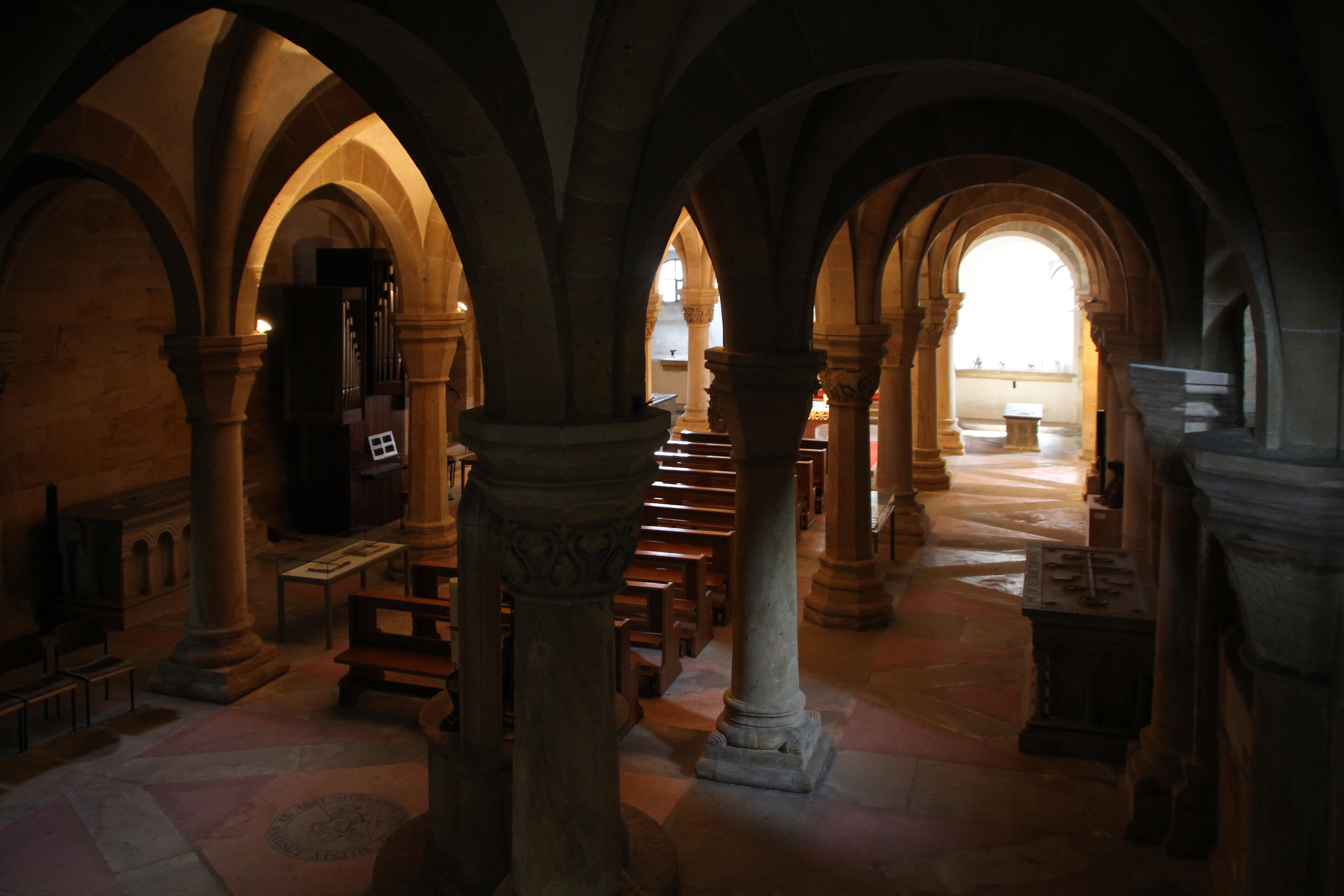 밤베르크 대성당 건축은 1002년 두 개의 지하실 공사로 시작되었다. 최초의 대성당은 서쪽 주합창단과 동쪽 두 번째 합창단 아래에 각각 지하실을 두었다.[1]