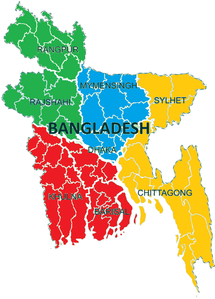 라지샤히 | 8 | 보구라, 자이푸르하트, 나오가온, 나토르, 나와브간지, 파브나, 라지샤히, 시라즈간지 |