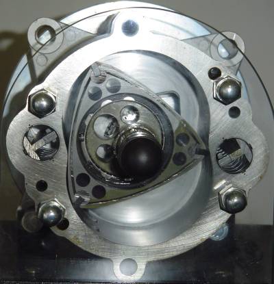 삼각형 로터의 한 면은 로터 한 바퀴 회전(출력축 3회전과 동일)마다 흡입, 압축, 팽창, 배기의 4단계 오토 사이클을 완료한다.[29] 고정된 꼭짓점 사이의 로터 형상은 연소실의 부피를 최소화하고 압축비를 최대화하기 위한 것이다.[30][31] 로터는 3면을 가지고 있으므로, 로터 한 바퀴 회전당 3회의 동력 펄스가 발생한다.