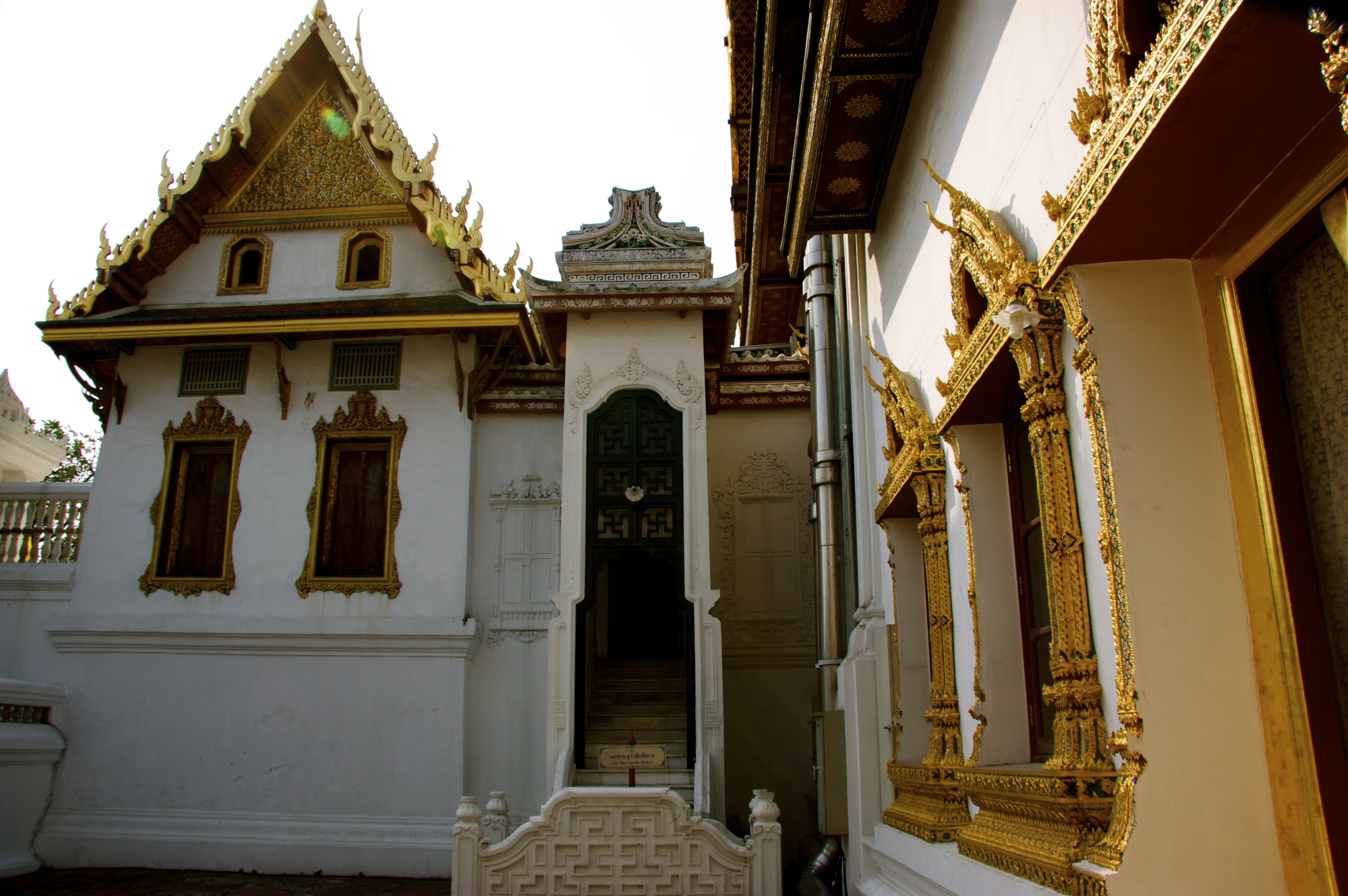 파이산탁신 홀 양쪽에는 불상을 모신 전각이 있다. 동쪽에는 '호 수랄라이 피만'(หอพระสุราลัยพิมาน|호 프라 수랄라이 피만th)이 있으며, 이는 두싯사다 문으로 이어진다. 호 수랄라이 피만은 태국식 건축 양식의 작은 건물로, 짧은 복도를 통해 파이산탁신 홀과 연결되어 있다. 이 전각에는 중요하고 귀중한 불상과 조각상들이 모셔져 있으며, 짜끄리 왕조의 각 왕조를 대표하는 불상들도 포함되어 있다. 일부 부처의 사리 또한 이곳에 보관되어 있다고 전해진다.[36][55]