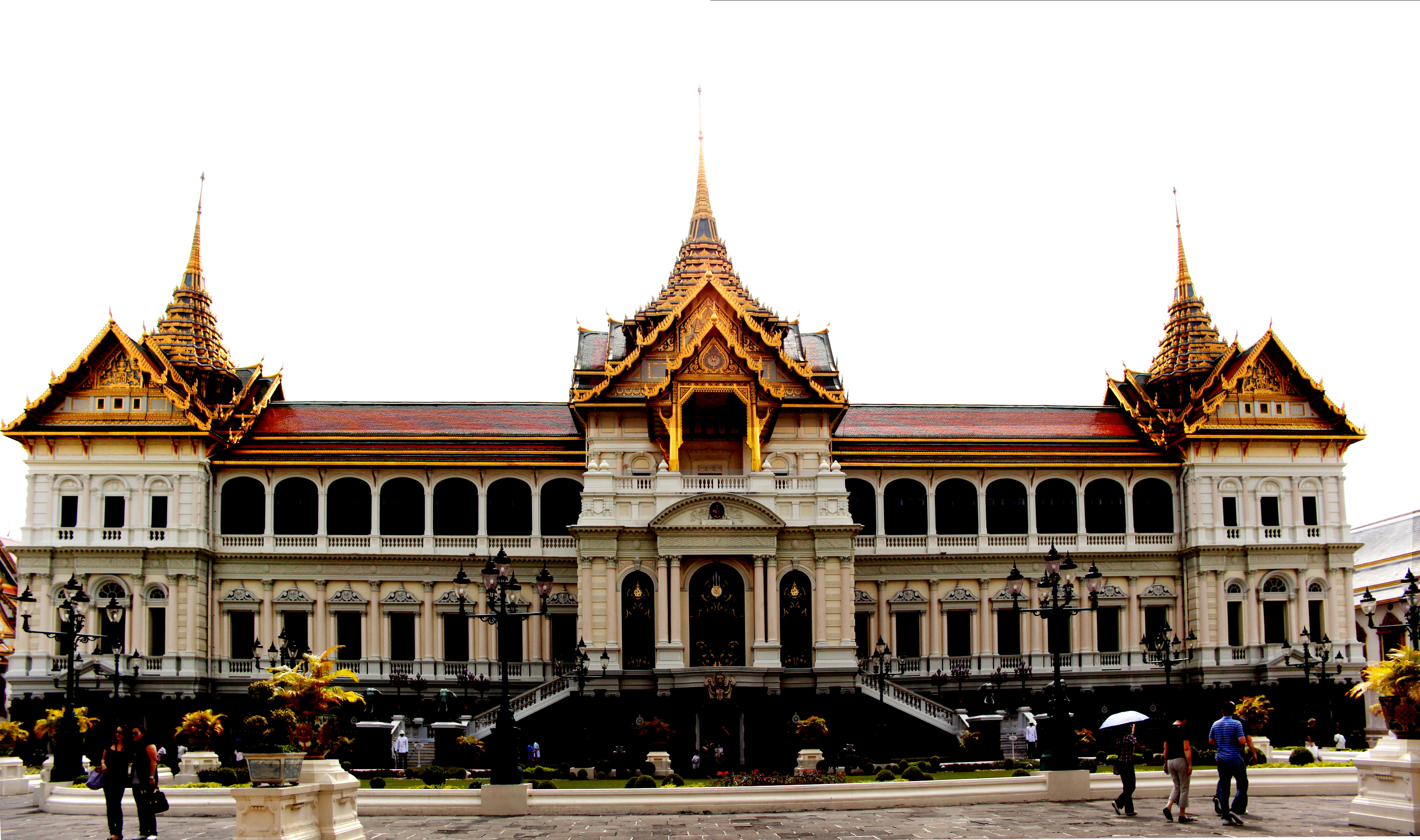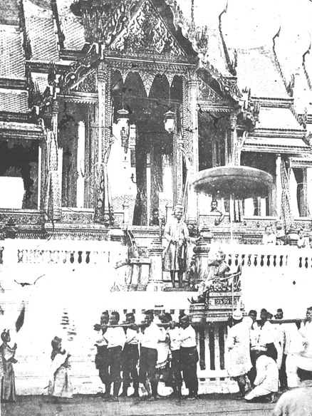 라마 5세는 싱가포르와 네덜란드령 동인도(현재 인도네시아)의 자바를 여행한 후, 영국인 건축가 존 클루니치와 그의 조수 헨리 C. 로즈를 통해 차크리 마하 프라삿 즉위식 홀을 설계하고 건설하도록 했다.[57][64] 처음에는 돔이 있는 완전한 유럽식 건물을 원했지만, 총리 씨 수리야봉세(추앙 부나그)의 주장으로 금박을 입힌 첨탑과 태국식 지붕을 추가했다.[63][65]