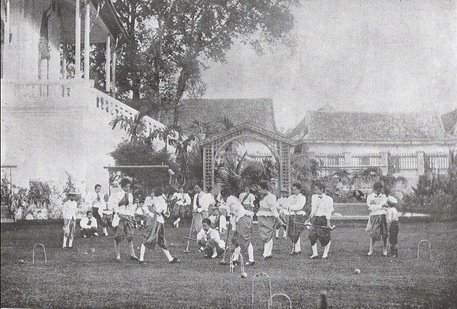 처음에 라마 1세는 이 정원을 *Suan Kaew*(สวนแก้ว) 또는 '수정 정원'이라는 개인 휴양지로 조성하였다. 라마 2세는 이름을 *Suan Khwa* 또는 '오른쪽 정원'으로 바꾸고, 정원을 아름답게 꾸며 내궁 거주민들을 위한 유희 정원으로 만들었다.[99]