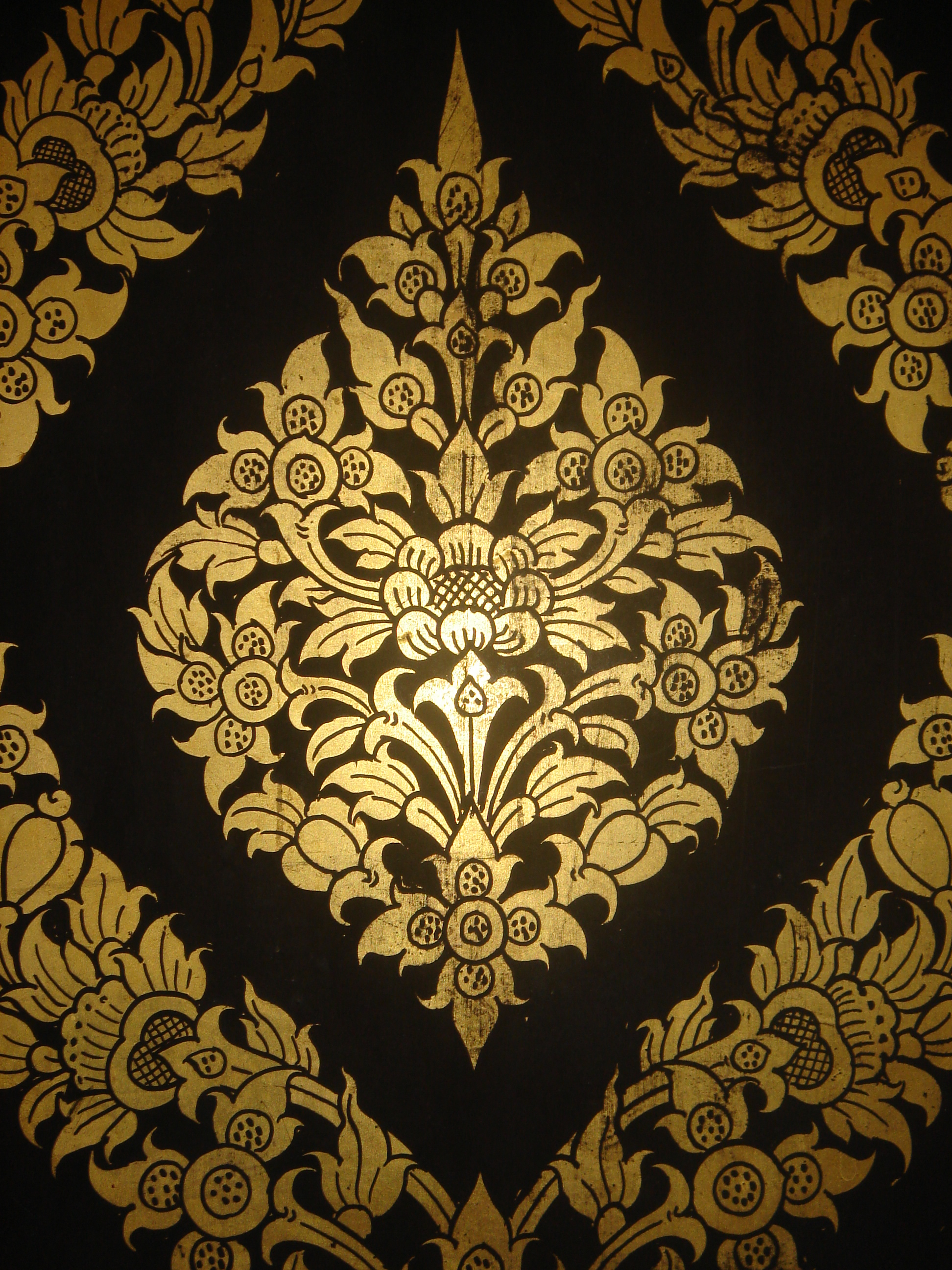 이 옥좌홀의 내벽은 기하학적 패턴으로 배열된 연꽃봉오리 디자인으로 칠해져 있다. 기도하는 신들이 봉오리 안에 앉아 있는데, 이것은 성지와 종종 관련된 일반적인 태국 모티프이다. 첨탑 바로 아래에 있는 팔각형의 천장은 유리 모자이크 별로 장식되어 있다. 이것은 천상의 거처에 있는 듯한 인상을 강화시킨다. 문과 창문 셔터의 내부 패널에는 서로 마주 보고 무기를 들고 왕을 위한 경호원으로 서 있는 신들이 묘사되어 있다. 벽의 두께는 벽과 셔터 사이의 공간을 중국식으로 나무를 묘사한 벽화로 칠할 수 있도록 한다.[78][87]