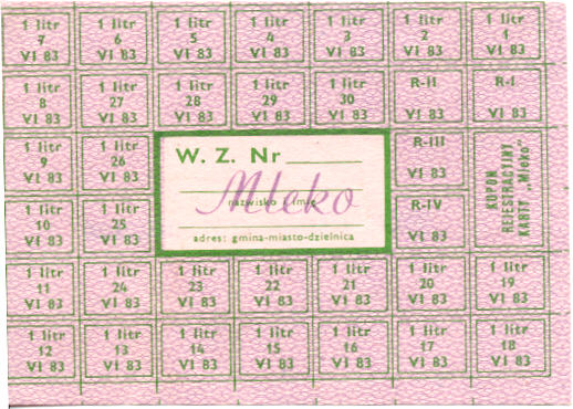 폴란드는 경제 위기에 대처하기 위해 1981년에 배급을 시행했다. 배급 시스템은 처음에는 인구의 일상 필수품 대부분을 포함했지만 시간이 지남에 따라 점차적으로 폐지되었고, 마지막 배급은 1989년에 폐지되었다.[37]