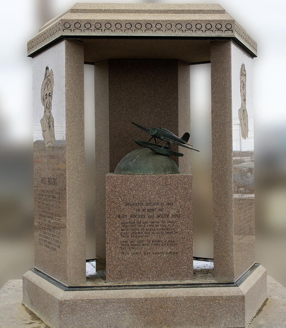 1935년 8월 15일, 윌 로저스와 파일럿 윌리 포스트가 탑승한 비행기가 강에 추락하여 두 사람 모두 사망했다. 추락 현장에는 기념비가 세워져 미국 국립 사적지로 지정되었으며, 배로의 공항은 "윌 포스트-윌 로저스 기념 공항"으로 명명되었다.