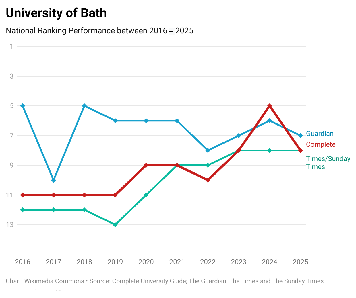 최신 정부 평가에서 배스 대학교는 약학 및 약리학, 경영학(AMBA 인증), 건축 및 토목 공학, 경제학, 컴퓨터 과학, 전자 및 전기 공학, 기계 공학 (IMechE 인증), 수학, 통계 및 운영 과학, 교육, 분자 생명 과학, 생명 과학, 물리학 및 천문학, 정치학, 스포츠, 사회 정책 및 행정 등 15개 과목에서 "우수" 등급을 받았다.[46]