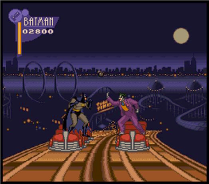 조커는 《배트맨과 로빈의 모험》 SNES 버전의 첫 번째 악당이다.