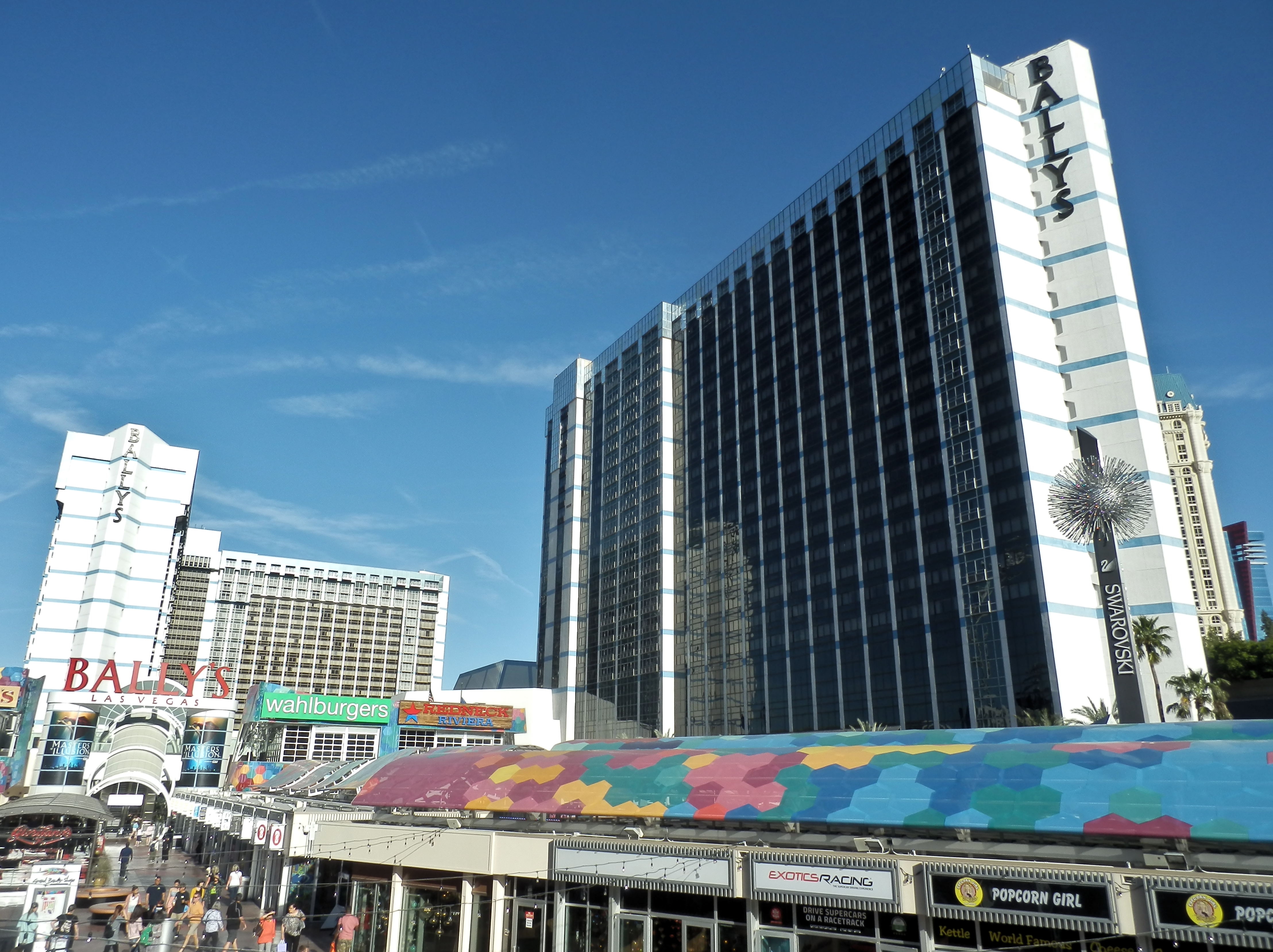또한 모노레일 계획이 발표되었으며,[78] 1995년 6월에 개통되었다. 이 모노레일은 Bally's에서 스트립의 남쪽에 위치한 새로운 MGM 그랜드 리조트까지 운행되었다.[79][80] 리조트의 쇼핑몰은 1995년에 개조되었다.[46] Bally's Avenue Shoppes로 알려진 이 쇼핑몰에는 약 20개의 소매점이 포함되었다.[81][82] 이전 영화관은 400만달러를 들여 1995년 후반에 개장한 새로운 스포츠 베팅장으로 개조되었다.[46][83] Bally Entertainment는 1996년에 힐튼 호텔 코퍼레이션에 인수되었다.