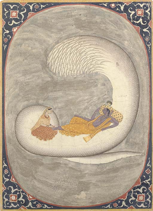 힌두 신화에서 비슈누는 뱀 세샤 위에 떠 있는 우주 물에서 잠을 잔다고 한다. 푸라나에서 세샤는 머리 위에 우주의 모든 행성을 지니고 있으며, 모든 입으로 비슈누의 영광을 끊임없이 노래한다. 세샤는 "아난타-세샤"(끝없는 세샤)라고도 불린다. 사무드라 만탄 푸라나에서 세샤는 만다라 산을 풀어 아수라와 데바가 하늘의 우유 바다를 저어 불멸의 묘약 소마(암리타)를 만드는 데 사용하도록 한다. 젖줄로 사용된 또 다른 거대한 뱀은 바수키이다.