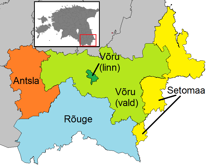 역사적 경계 내의 버루마(Võrumaa)는 버로: ''바나 버로마''(Vana Võromaa)를 포함하여 카룰라, 하르글라, 우르바스테, 로우게, 카네피, 펄바, 래피나, 바스트셀리나의 8개 교구로 이루어져 있었다.