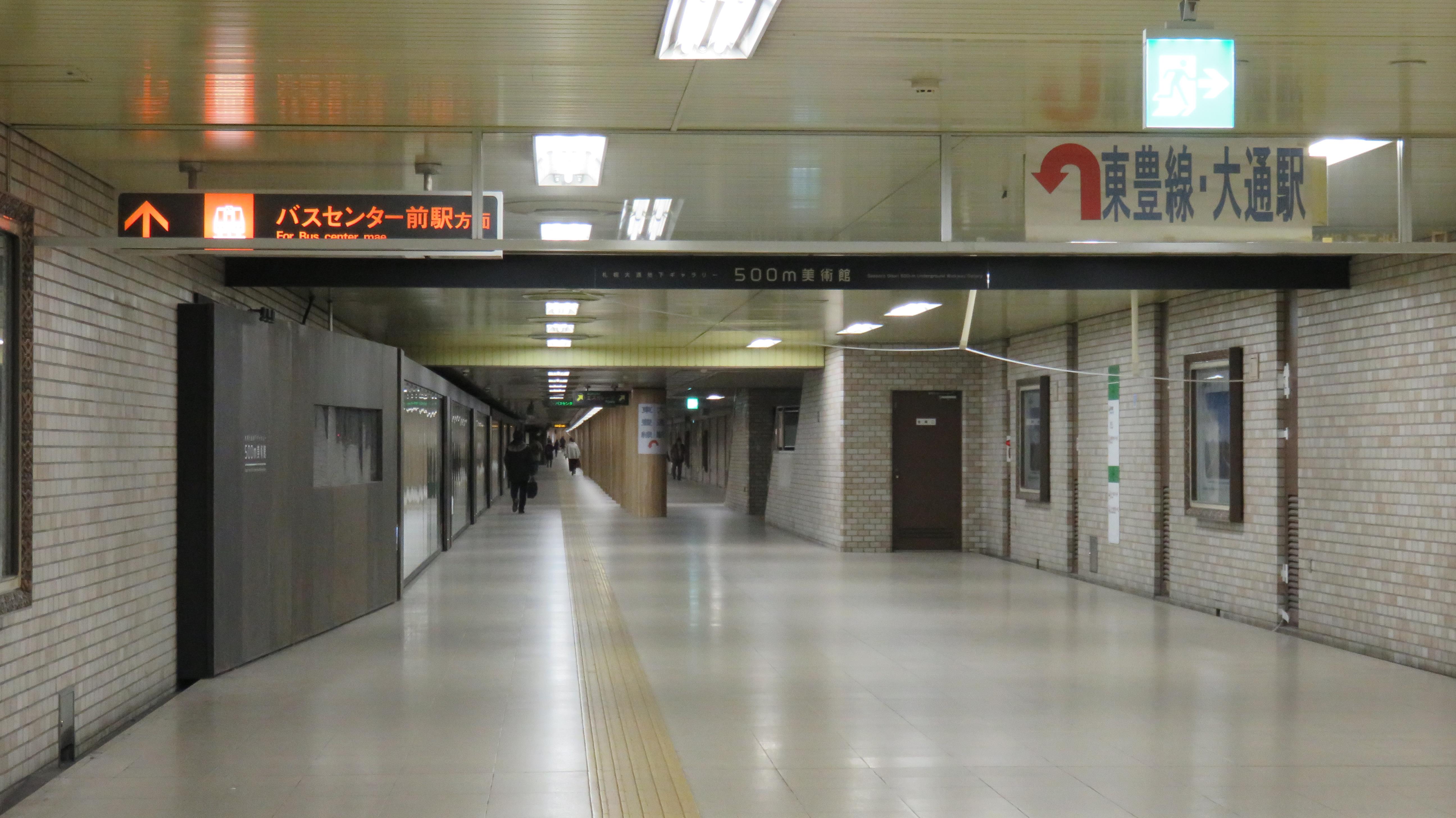 미나미오도리 아래에 위치하며, 지하 보도와 승강장은 이 도로를 따라 동서 방향으로 뻗어 있다. 출입구는 10개가 있으며, 동쪽 끝과 서쪽 끝 출입구 사이의 거리는 약 500m이다. 지하 보도를 통해 서쪽에 있는 오도리역까지 연결된다.