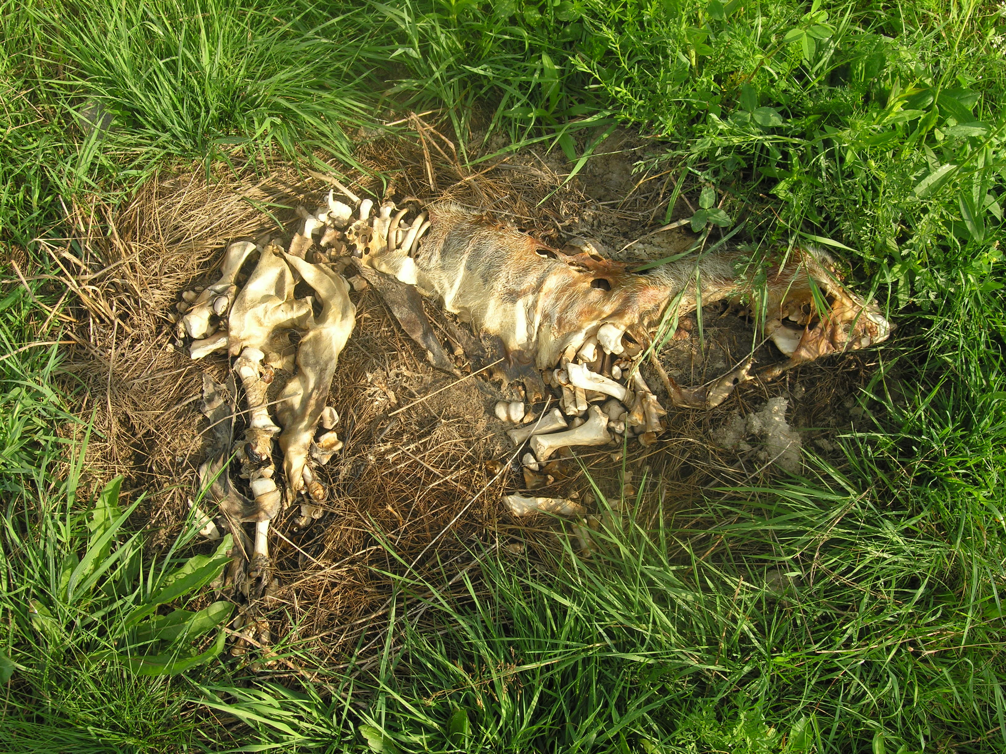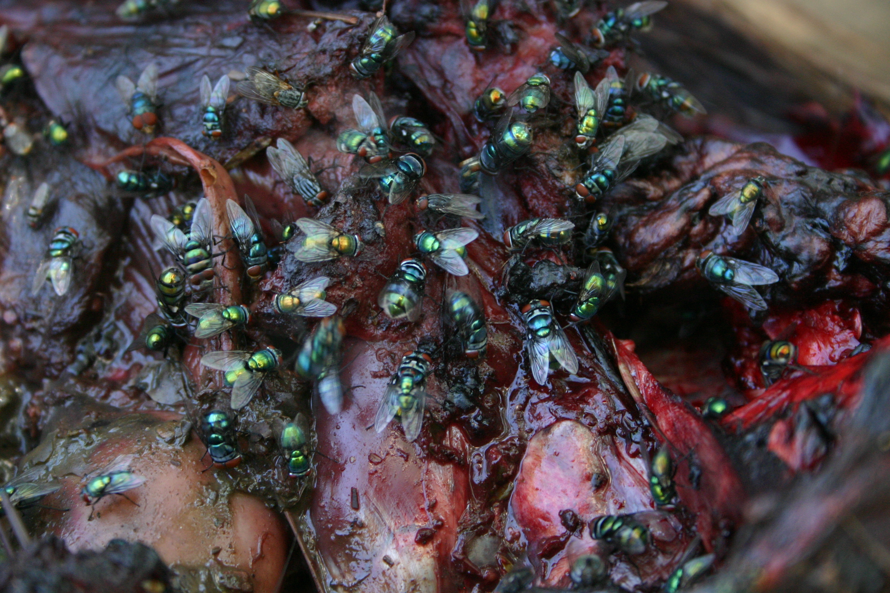곤충은 시체를 포함한 유기물 분해에 필수적인 역할을 한다. 부패 과정에서 발생하는 화학 물질은 죽은 생물을 먹는 곤충을 유인하며, 이 곤충들은 신체 조직 분해를 가속화한다.[41] 검정파리는 시체에 처음으로 도착하는 주요 곤충 중 하나이다. 검정파리는 자연적인 구멍이나 상처, 습한 곳에 알을 낳으며, 부화한 구더기 유충은 부패하는 조직을 섭취한다. 진드기와 딱정벌레 같은 다른 절지동물 또한 남은 잔해를 먹어 분해 과정에 기여한다.