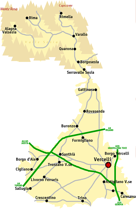 북부는 몬테로사에서 흘러내리는 세시아강 상류의 Valsesiait 지역이다.