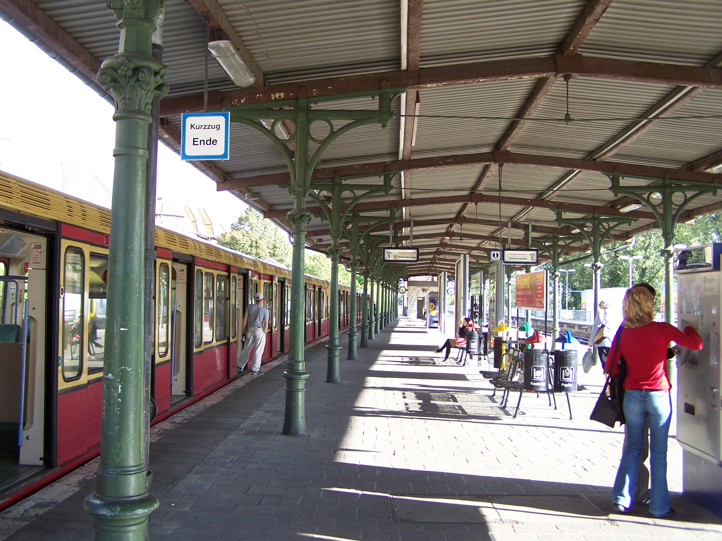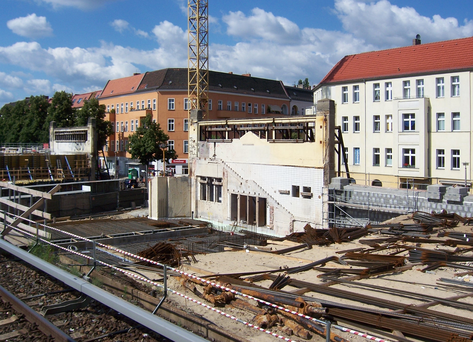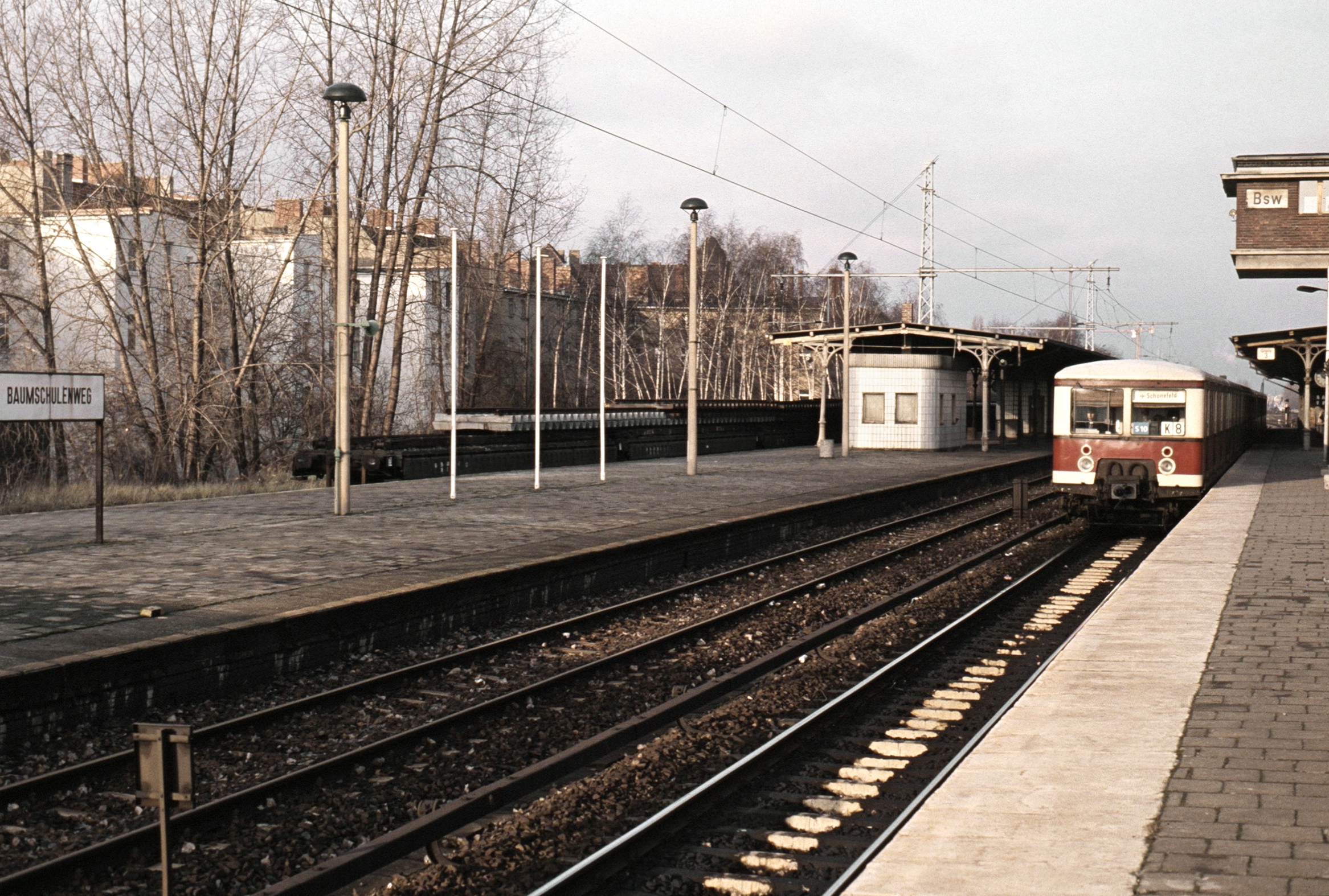 Baumschulenstraße|바움슐렌슈트라세de를 가로지르는 철교는 개량 공사 전까지 하르퉁식 교각을 사용하고 있었다. 이는 베를린에서 교통 목적으로 사용된 마지막 하르퉁식 교각이었으나, 철교를 새로 건설하면서 철거되었다. 철거된 과거 교량의 기둥 4개는 신역사 대합실 내부에 다시 설치되어 보존되었다.