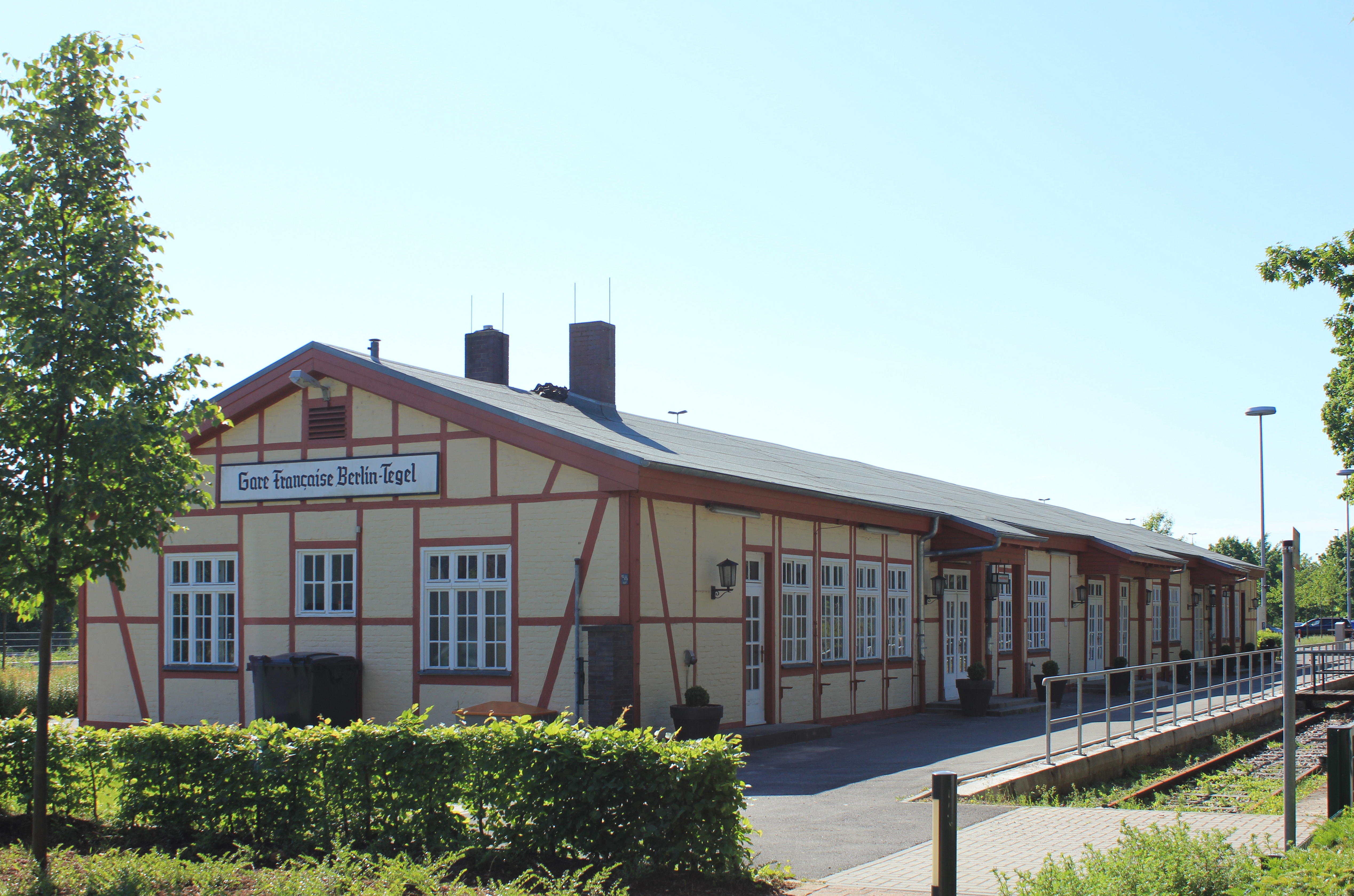 테겔역은 연합군에 의해 베를린이 분단되면서 이 일대를 점령한 프랑스군의 군용 열차역으로 사용되었다. 1947년 12월 6일 프랑스군 사령관 장 가네발(Jean Ganeval프랑스어)이 프랑스 군용역 개통식에 참석했다.[14] 프랑스군 및 군용 물자 수송을 위해서 테겔 화물역 일부를 프랑스군이 점유하여 베를린 테겔 프랑스역(Gare Française Berlin-Tegel프랑스어)으로 개칭했다.[14] 최초의 군용 열차는 1945년 11월 18/19일 바덴바덴에서 베를린 반제역을 경유하여 여기까지 운행했고, 군 전용 여객 승강장이 별도로 설치되었다.[15] 1946년 11월 12/13일부터는 프랑스군용 DFA 651 열차가 마인츠에서 베를린 테겔역, DFA 652 열차가 그 반대 방향으로 매주 3회 운행했다. 테겔역에서 운행하는 프랑스군용 열차는 프랑스 열차(Franzosenzüge)라고 불렸다.[16] 과거 헤르만 괴링 막사를 징발한 나폴레옹 사령부(Quartier Napoléon)에 주베를린 프랑스군 사령부가 설치되었다.