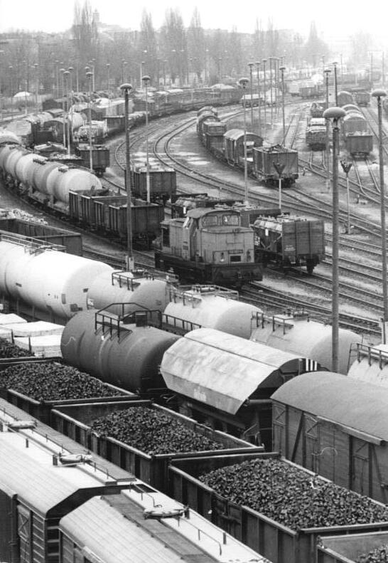 두 적재선(1번: 베를리너 슈트라세, 2번: 그라니츠슈트라세)에서는 석탄과 건축 자재 등을 처리했고, 동독의 주택 건설 계획에 필요한 조립식 콘크리트 블록을 운송할 때 사용하는 팔레트와 특수차 처리 시설, 쓰레기 환적 시설이 있었다. 여기에 추가로 석탄 및 고철 처리용 추가 선로가 있었다.