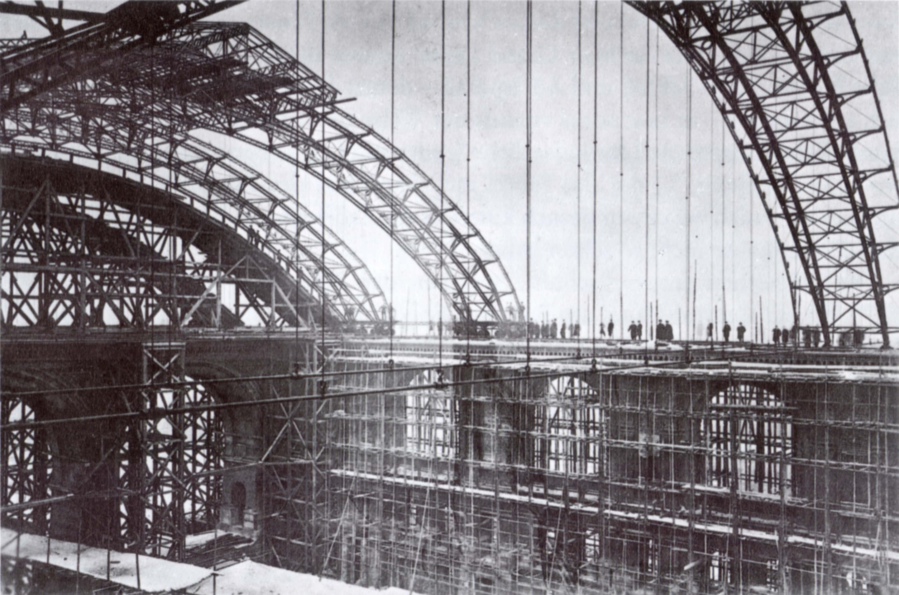 건물 내부에는 최소 4등급의 티켓 소지자를 위한 별도의 대기실과 시설이 갖춰진 화려하고 넓은 매표소가 있었다. 방문하는 왕족들을 위한 별도의 입구와 리셉션 공간이 제공되었으며, 이는 자주 사용되었다. 이 모든 것 뒤에는 작가이자 엔지니어인 하인리히 자이델이 설계한 거대한 철골 및 유리 기차 차고 지붕이 길이 171m, 너비 62m (10,600m2를 덮고, 40,000명이 설 수 있는 공간)로 솟아 있었고, 중앙선 높이는 34m에 달했다.[1]