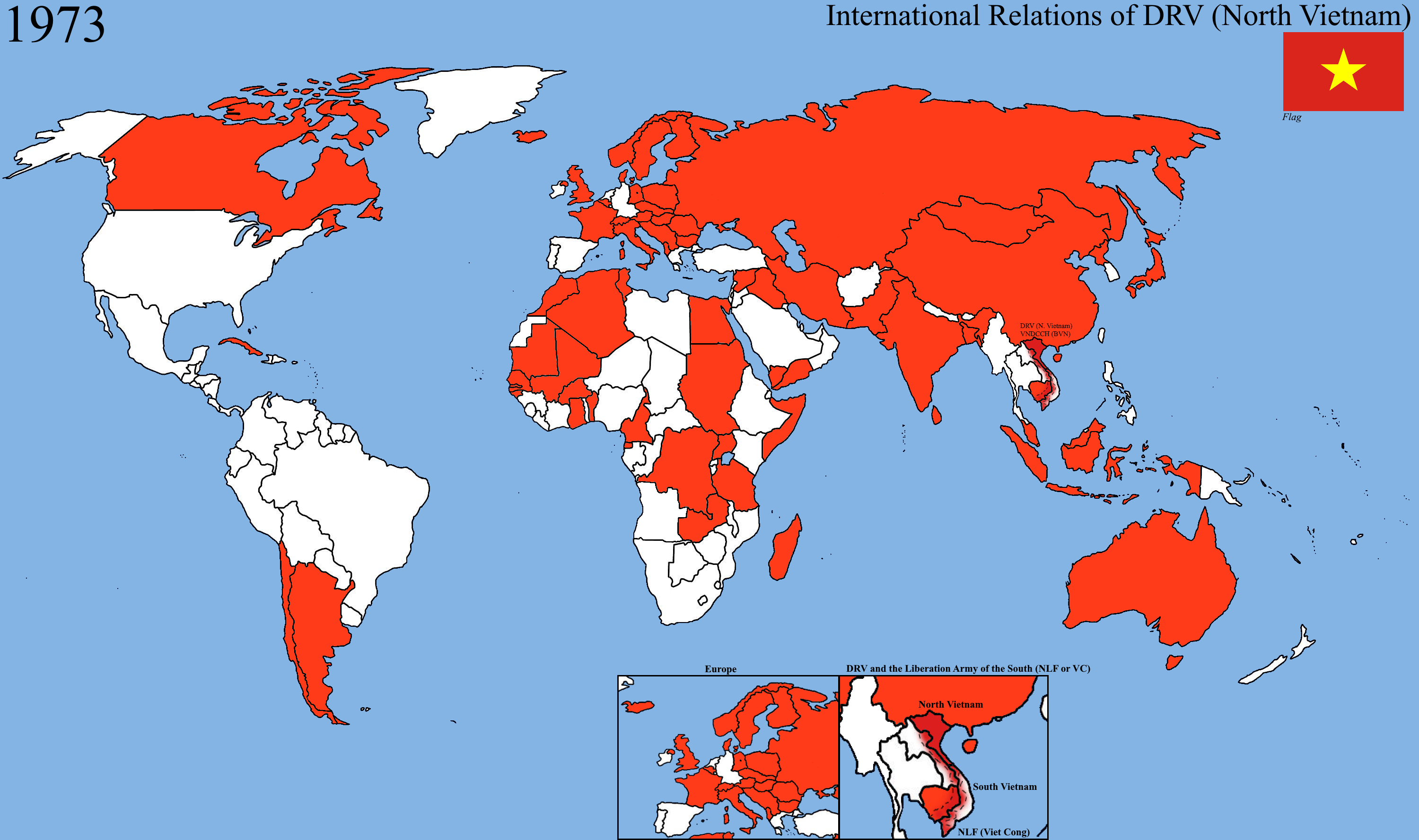 베트남 민주공화국은 수많은 자본주의 국가들과 반공주의 국가들로부터 외교적으로 고립되었는데, 이들 국가는 남베트남의 반공주의 정부만을 승인했다.