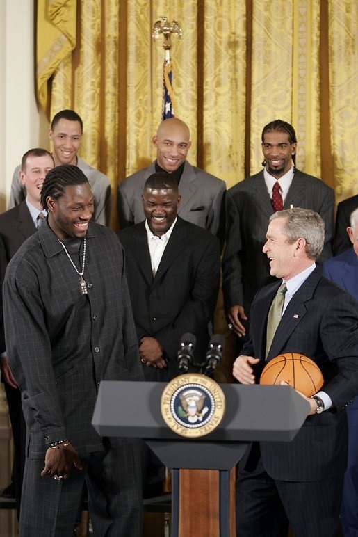 2003-04 시즌에는 차운시 빌럽스, 리처드 해밀턴, 테이션 프린스, 그리고 시즌 중반 합류한 라쉬드 월러스 등 강력한 동료들과 함께 피스톤스를 1990년 이후 14년 만에 NBA 파이널 우승으로 이끌었다. 당시 파이널 상대는 샤킬 오닐과 코비 브라이언트가 이끄는 로스앤젤레스 레이커스였는데, 많은 전문가들의 예상을 뒤엎고 피스톤스가 4승 1패로 승리했다. 특히 월리스는 시리즈 내내 오닐을 상대로 뛰어난 수비력을 선보였으며, 우승을 확정 지은 5차전에서는 18득점 22리바운드를 기록하며 팀 승리에 결정적인 공헌을 했다[55].