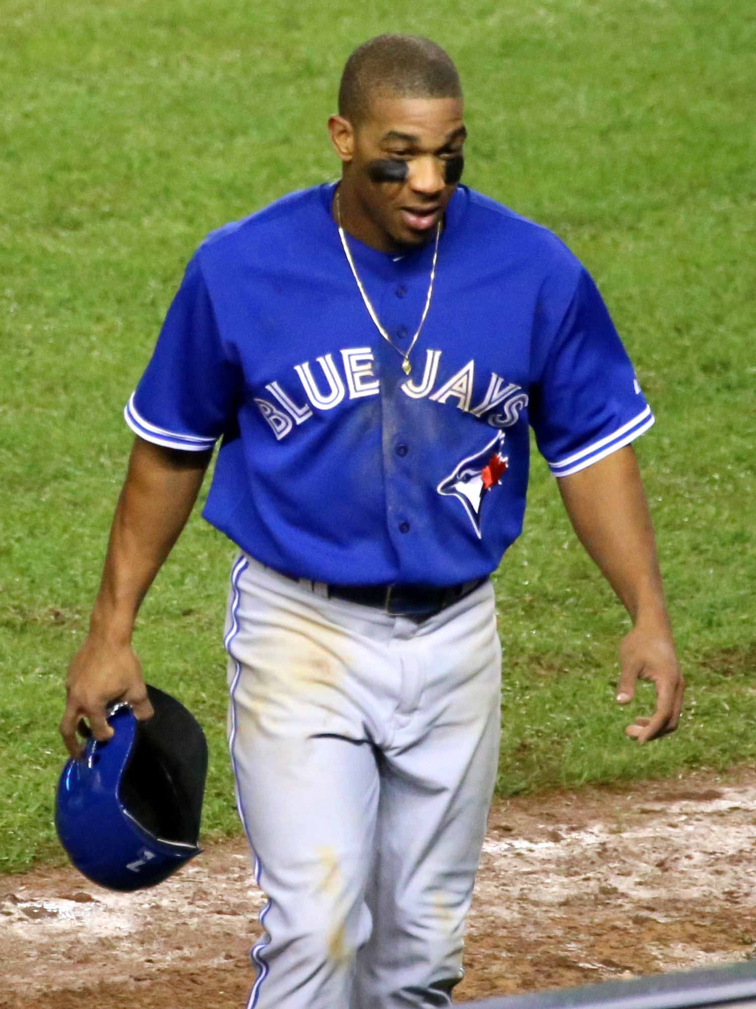 2015년 7월 31일 알베르토 티라도, 지미 코데로를 상대로 트레이드되어 토론토 블루제이스로 이적했다.[108][109][43][84][85] 이적 후 주전 좌익수로 기용되며 56경기에 출전, .319의 타율을 기록하며 컨디션을 끌어올렸다.[46] 필라델피스 필리스와의 합산 기록은 152경기 출전, 타율 .306, 31도루였다.[46] 블루제이스는 22년 만에 아메리칸 리그 동부 지구 우승을 차지하며 포스트시즌에 진출했다.[46] 2015년 아메리칸 리그 챔피언십 시리즈 6차전에서 제프 넬슨 심판의 스트라이크 판정에 불만을 품고 배트로 쓰레기통을 공격하는 행동을 보였다.[46]2. 5. 워싱턴 내셔널스