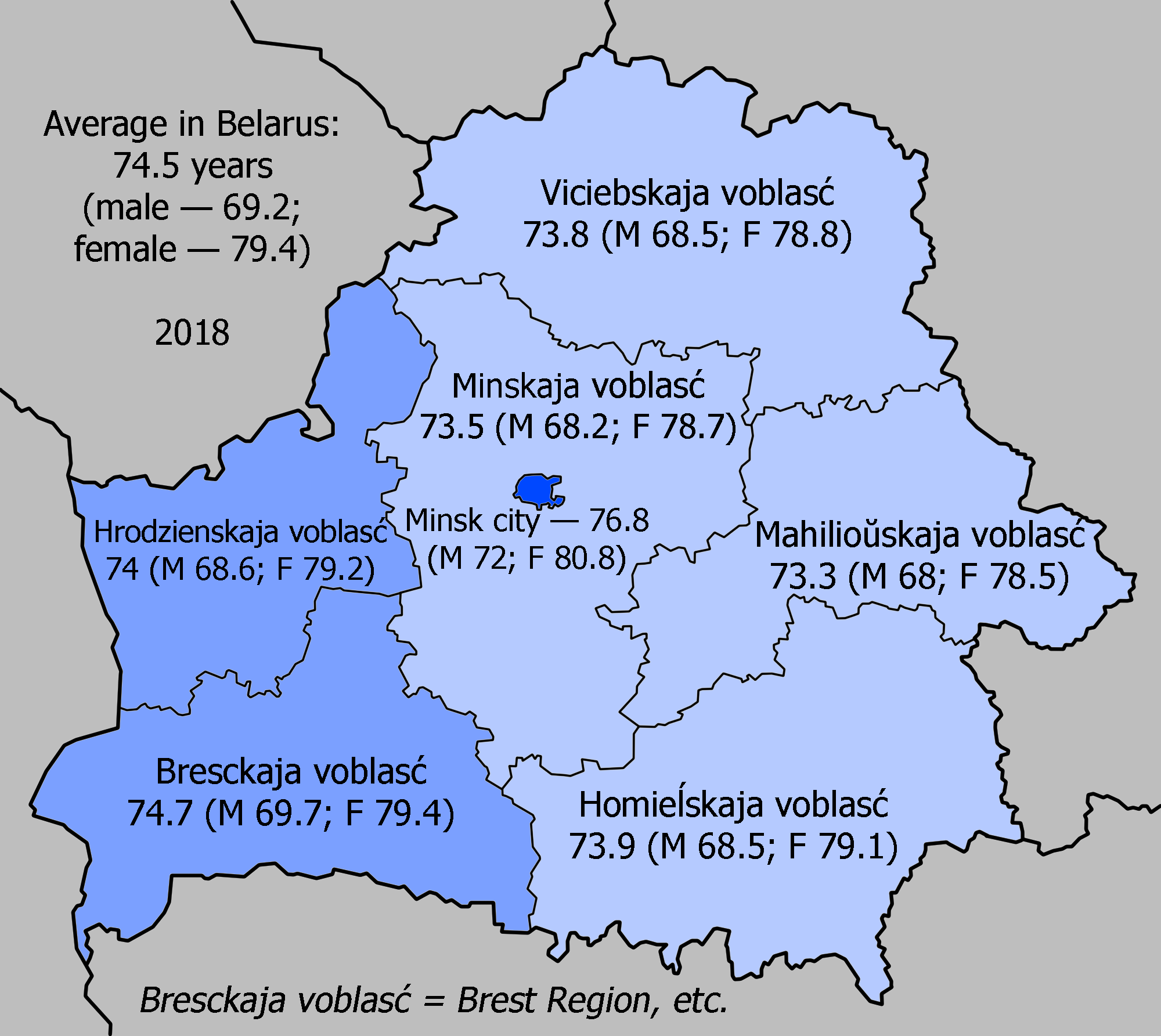 [6] 웹사이트 Population on January 1, 2018 by regions of the Republic of Belarus http://www.belstat.g[...] Белстат 2018