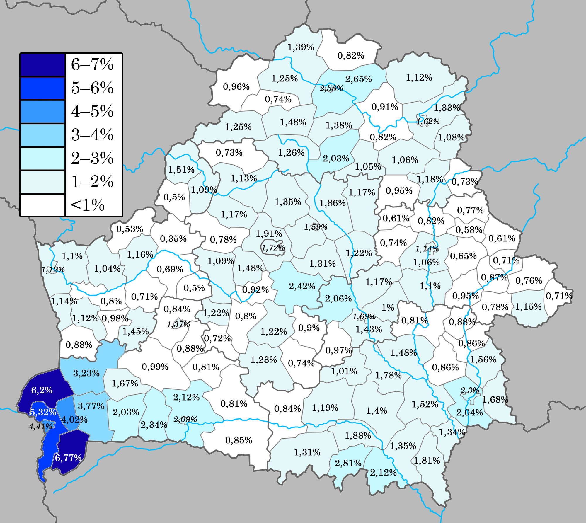 [[File:Poles in Belarus 1960.png|thumb|right|1960년 폴란드 소수 민족 구 :