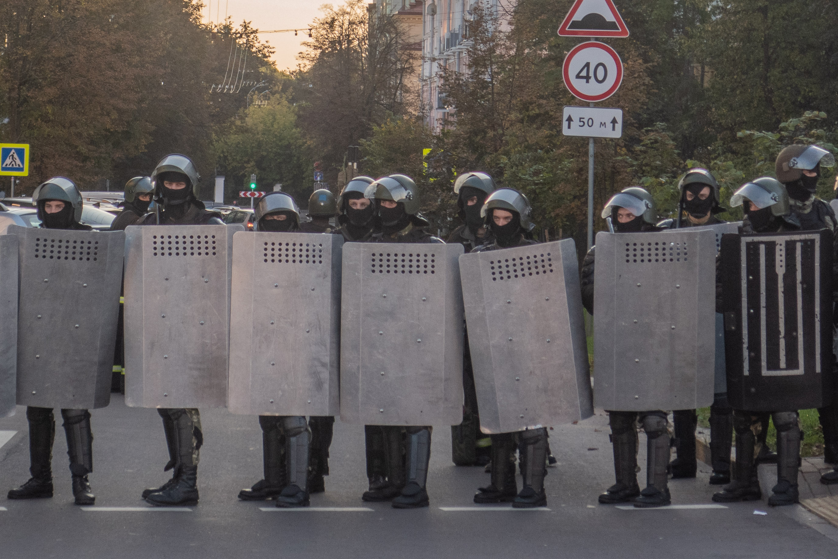 8월 5일에 공개된 비디오에 나온 벨라루스 군인 제복과 장비는 벨라루스 내부 부대의 것과 유사하다.(2020년 민스크에서 벌어진 시위에서 찍힌 사진)